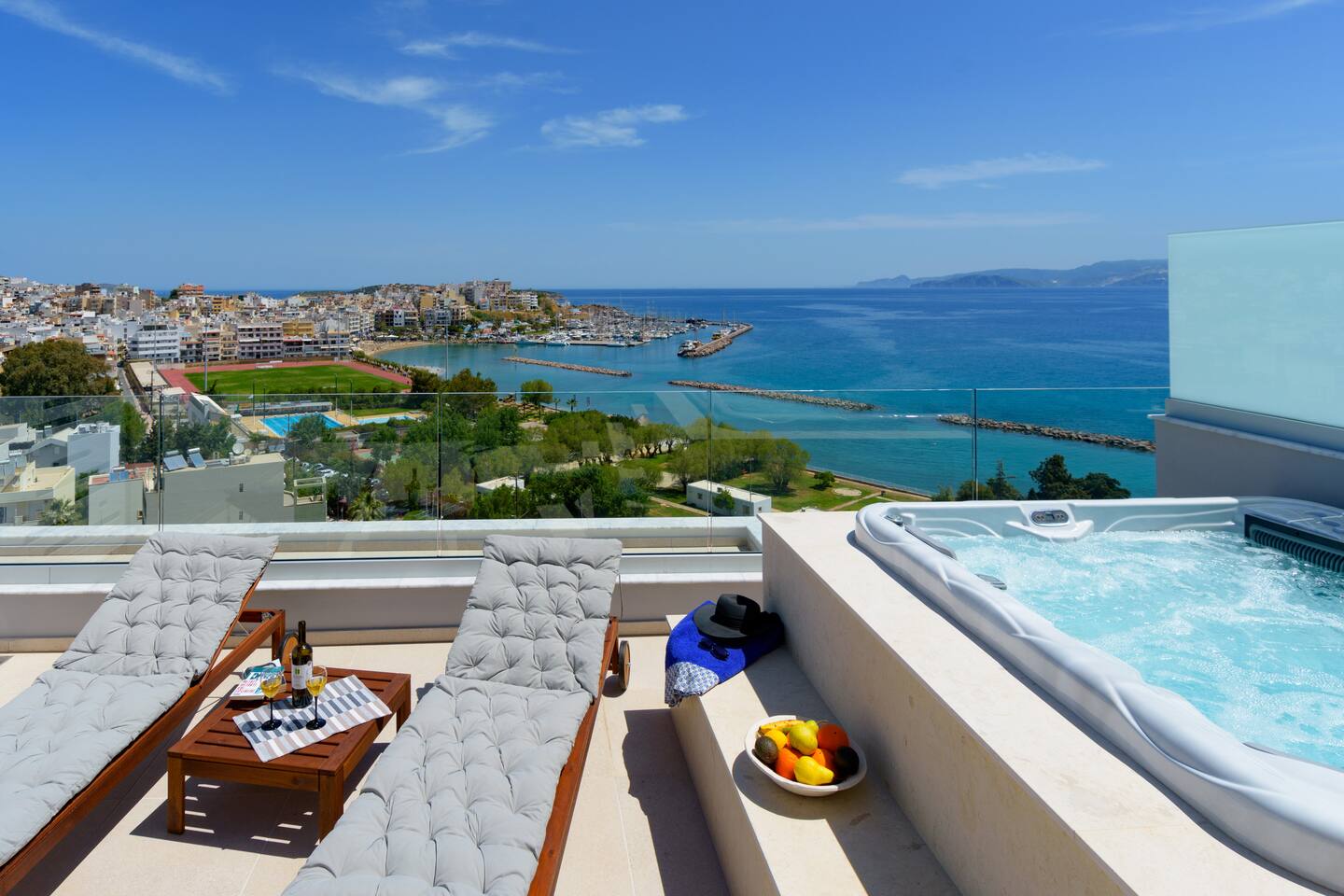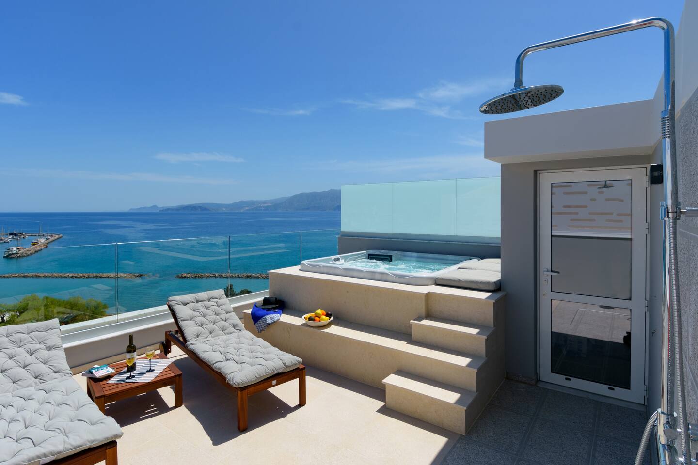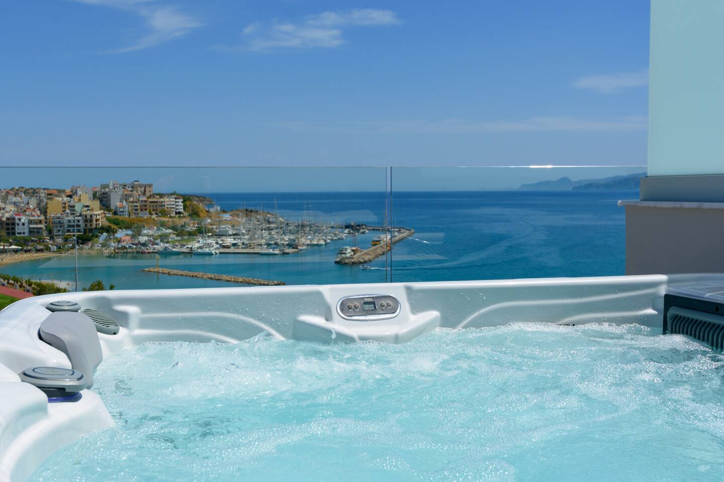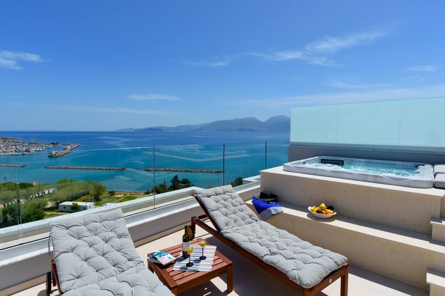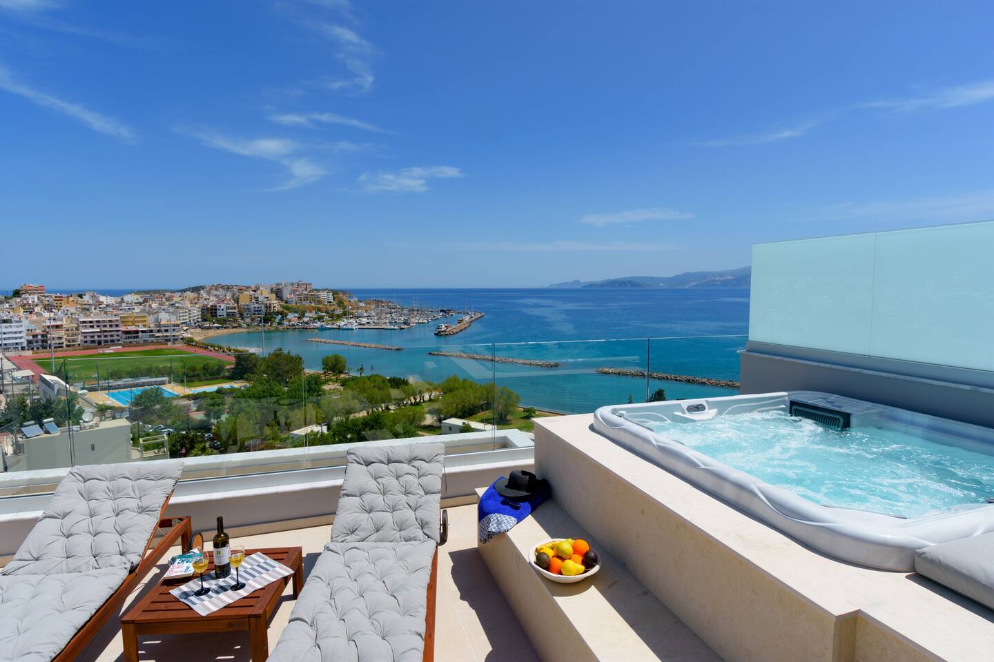 Indulge in luxury at Angelique Luxury Apartment, a beachfront retreat in Agios Nikolaos. Just 800m from Ammos Beach and under 1km from Almiros Beach, this air-conditioned haven offers comfort and style. Step into elegance with a tastefully decorated living room and TV. Relax in the serene bedroom and enjoy sea views from the balcony, complete with a hot tub. Towels and bed linen are provided for convenience. Paid airport shuttle service upon request from Heraklion Airport