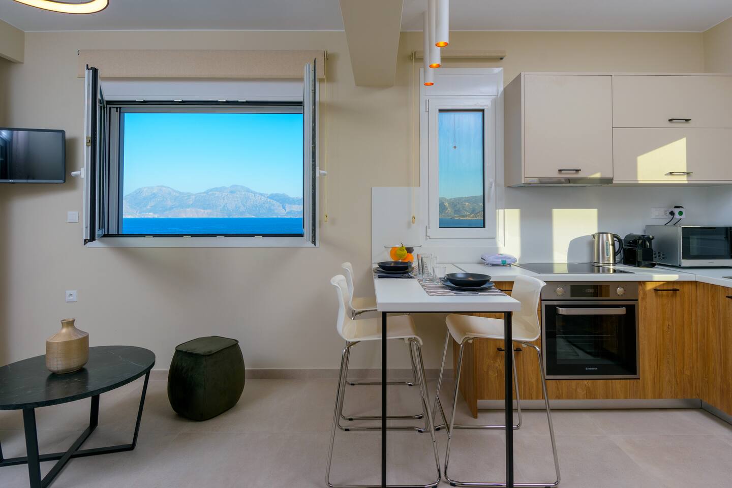 Welcome to Angelique Apartment – Your Seaside Getaway! If you're dreaming of a relaxing beachside escape, Angelique Apartment is the perfect choice! Located just steps from Gargadoros Beach, this one-bedroom apartment offers a beautiful sea view and a peaceful atmosphere, ideal for unwinding and enjoying the coastal beauty. Inside, you'll find a cozy bedroom with a comfortable double bed, ensuring a restful night’s sleep. The living area is bright and airy, with a sofa bed that comfortably accommodates an additional guest, making the apartment perfect for up to three people. The living room also has direct access to a balcony where you can sit back, relax, and take in the stunning views of the sea. The bathroom features a modern walk-in shower, perfect for freshening up after a day of sun and sea. On the rooftop, you'll find a hot tub—the perfect spot to soak and enjoy the panoramic views while feeling the cool sea breeze. There are also sunbeds to lounge on, offering a quiet retreat for sunbathing or reading a book. The apartment is located on the first floor, accessible only by stairs—so while you'll enjoy the elevated views and extra privacy, please keep in mind that it's not accessible by elevator. Angelique Apartment is not just about beautiful views and comfort—it’s also in a prime location! You’re within walking distance to Almyros Beach, Gargadoros Beach, and the vibrant town, where you can explore local shops, cafes, and restaurants. Whether you're looking to relax by the sea or explore the charming town and beaches, Angelique Apartment is the perfect spot for your next getaway!