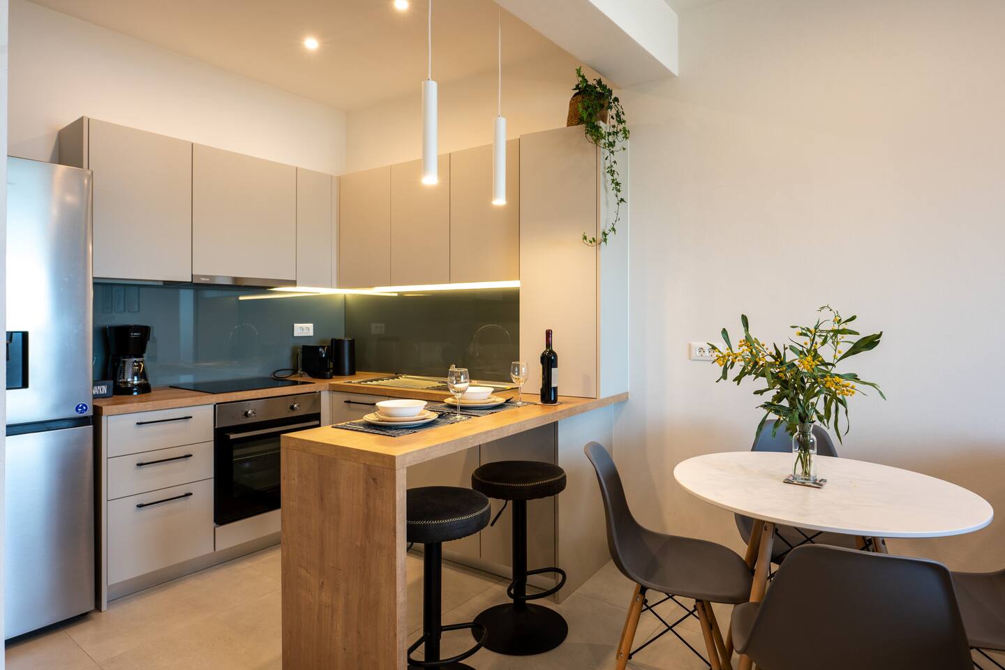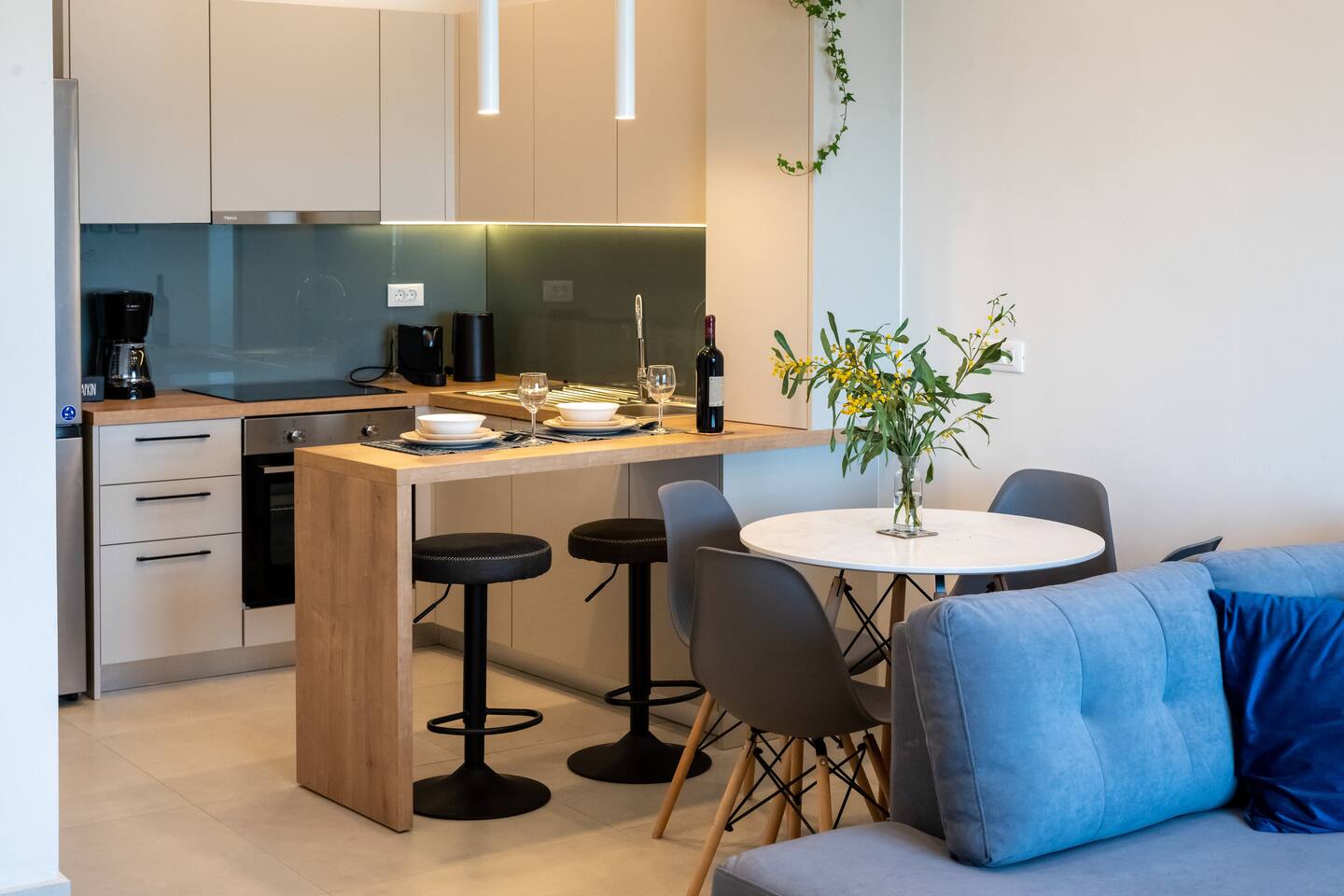 Discover our exquisite, brand new (built in 2023), seaside gem. Wake up to the calm sound of the waves, and enjoy your coffee on the terrace with a magnificent view of the sunrise. Enjoy our sophisticated apartments featuring elegant living spaces, top-of-the-line kitchens, inviting bedrooms, and luxurious bathrooms. Book your idyllic getaway today!