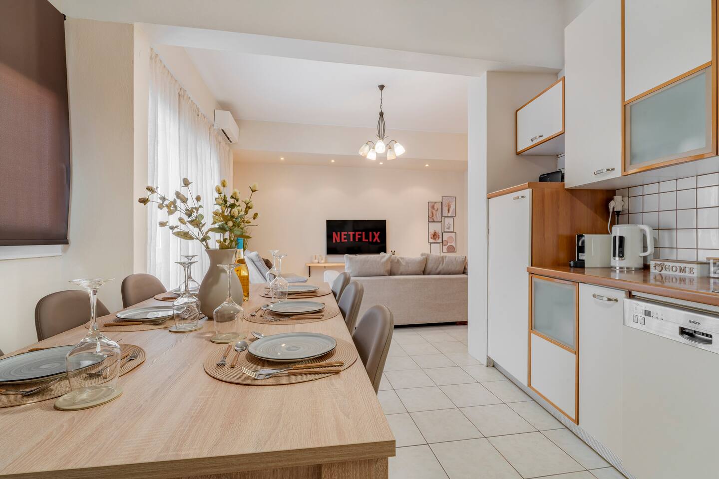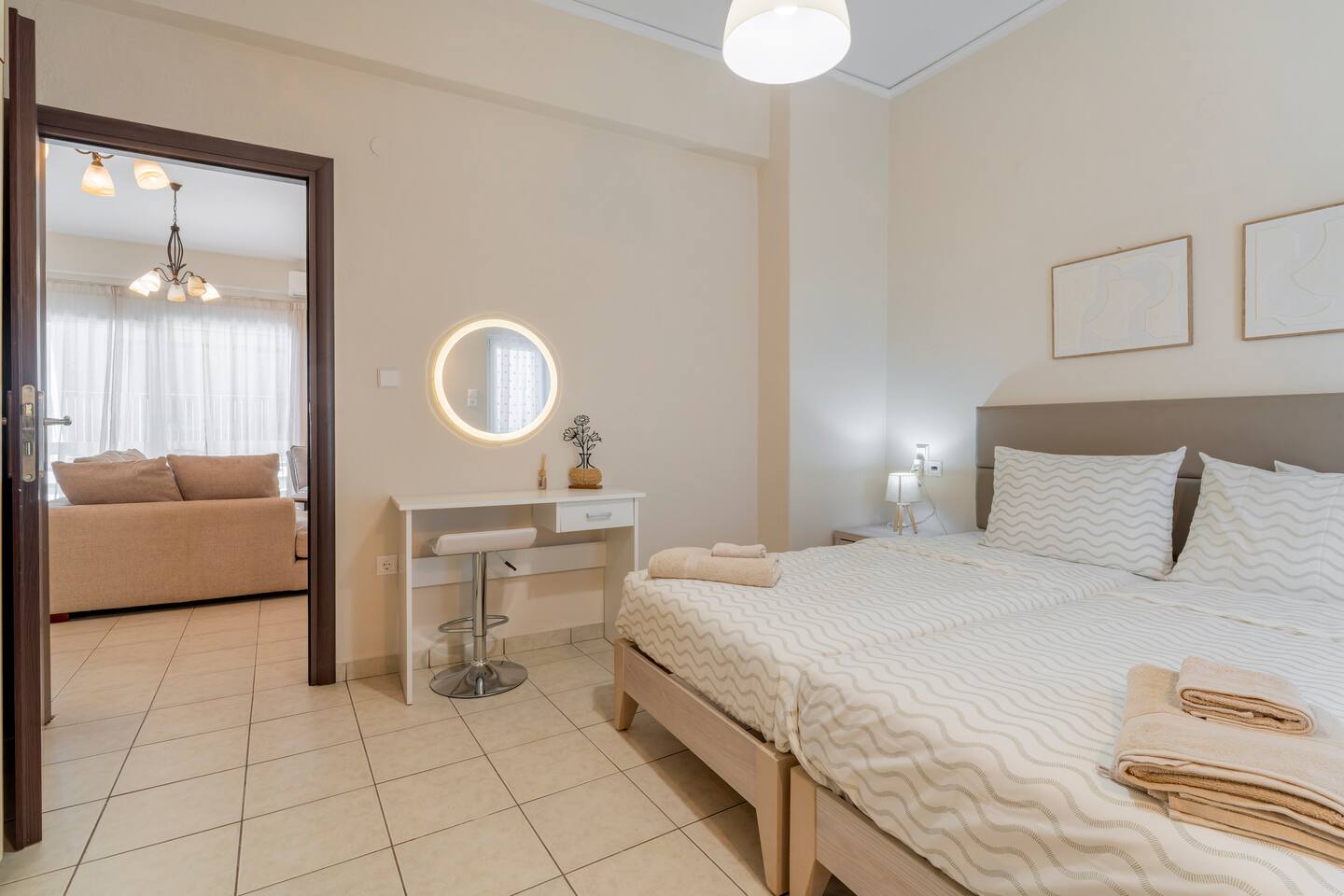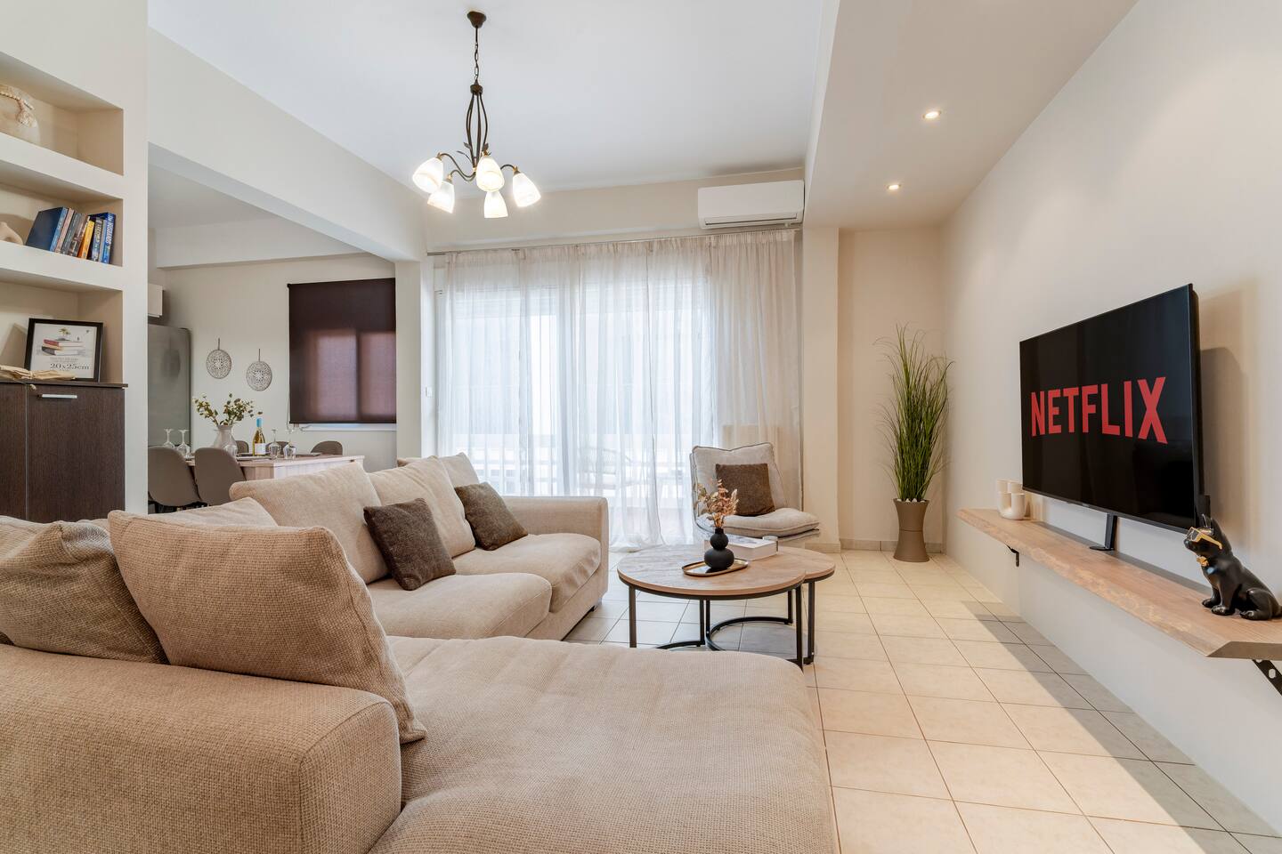 Casa Del Mar is a spacious and modern three-bedroom apartment located in the heart of Agios Nikolaos, Crete. Just a short walk from Ammoudi Beach and Lake Voulismeni, this 110 m² property offers stunning city and sea views from its private balcony. Key Features Prime Location: Situated 500 meters from both Ammoudi Beach and Lake Voulismeni, and close to local attractions like the Archaeological Museum and the Church of Panagia Kera. Comfortable Accommodation: The apartment includes three bedrooms—one with a double bed, one with two single beds, and one with a sofa bed—accommodating up to five guests. Fully Equipped Kitchen: Features a refrigerator, dishwasher, oven, stovetop, coffee machine, and all necessary kitchenware. Modern Amenities: Offers free Wi-Fi, air conditioning, a washing machine, and two bathrooms with complimentary toiletries and a hairdryer. Family-Friendly: Provides family rooms and children of all ages are welcome. Please note that the property does not offer parking facilities.