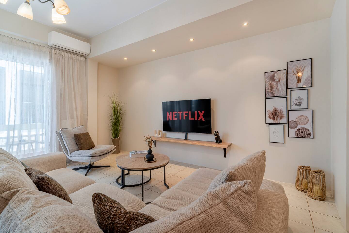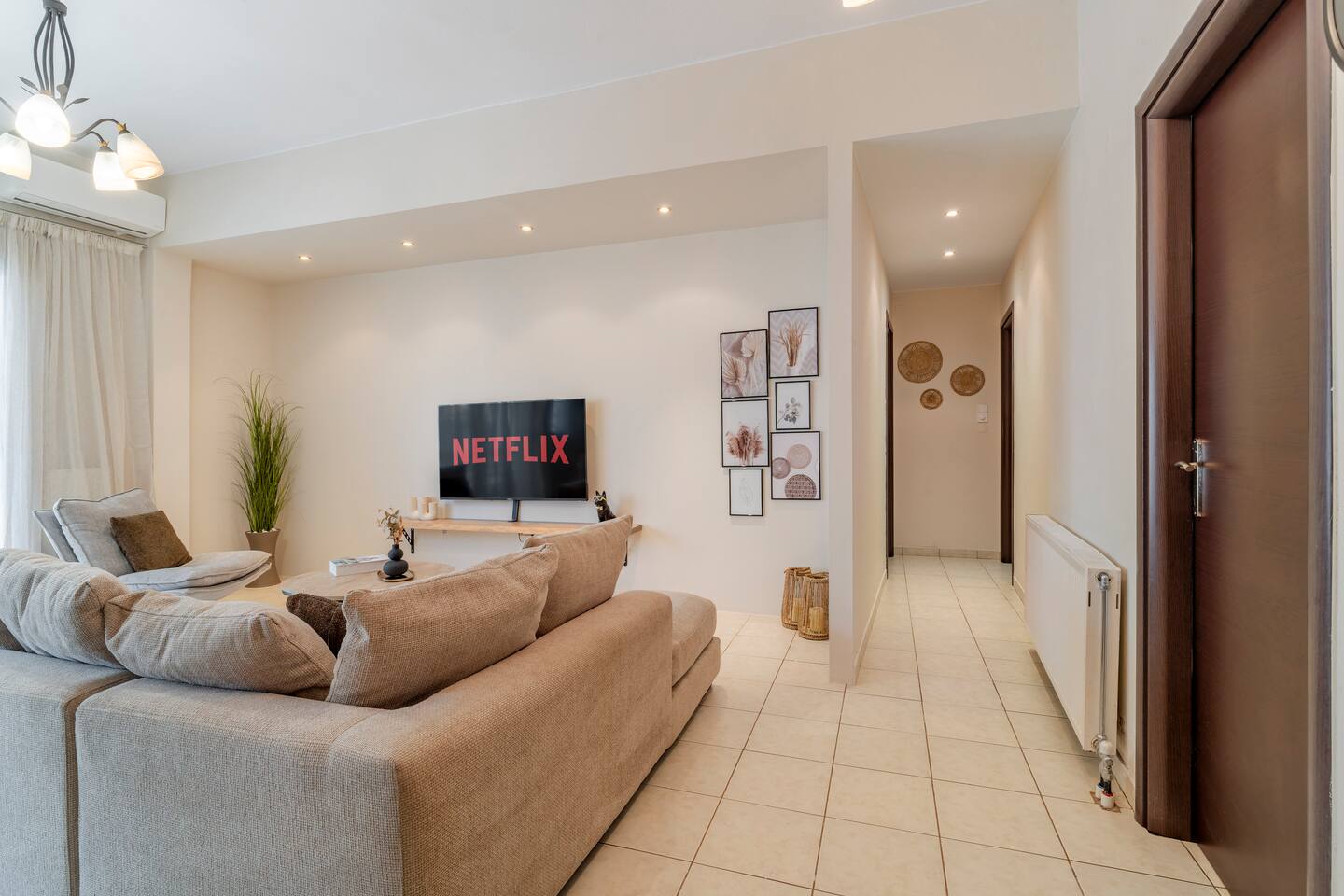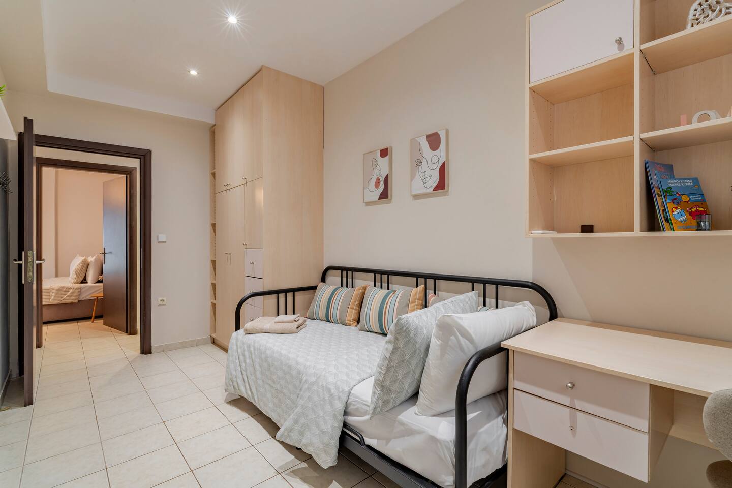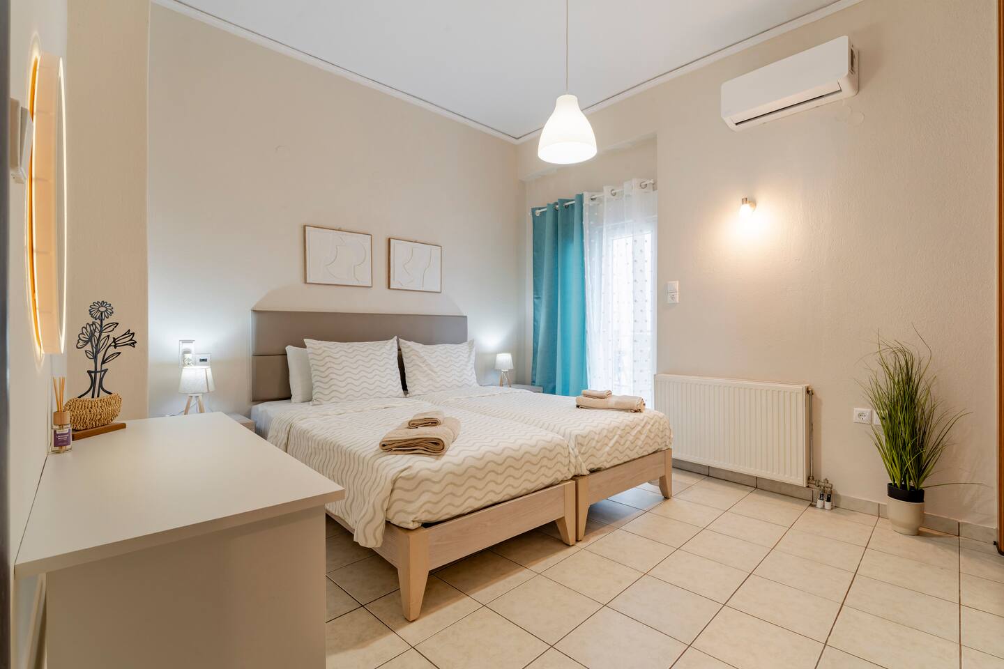 Casa Del Mar is a spacious and modern three-bedroom apartment located in the heart of Agios Nikolaos, Crete. Just a short walk from Ammoudi Beach and Lake Voulismeni, this 110 m² property offers stunning city and sea views from its private balcony. Key Features Prime Location: Situated 500 meters from both Ammoudi Beach and Lake Voulismeni, and close to local attractions like the Archaeological Museum and the Church of Panagia Kera. Comfortable Accommodation: The apartment includes three bedrooms—one with a double bed, one with two single beds, and one with a sofa bed—accommodating up to five guests. Fully Equipped Kitchen: Features a refrigerator, dishwasher, oven, stovetop, coffee machine, and all necessary kitchenware. Modern Amenities: Offers free Wi-Fi, air conditioning, a washing machine, and two bathrooms with complimentary toiletries and a hairdryer. Family-Friendly: Provides family rooms and children of all ages are welcome. Please note that the property does not offer parking facilities.