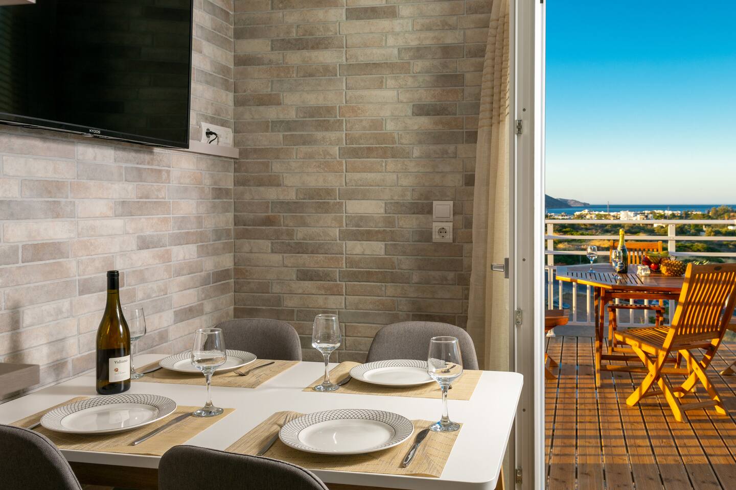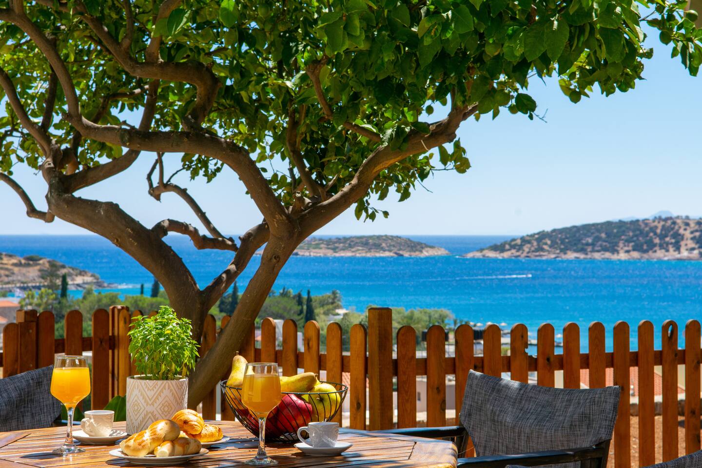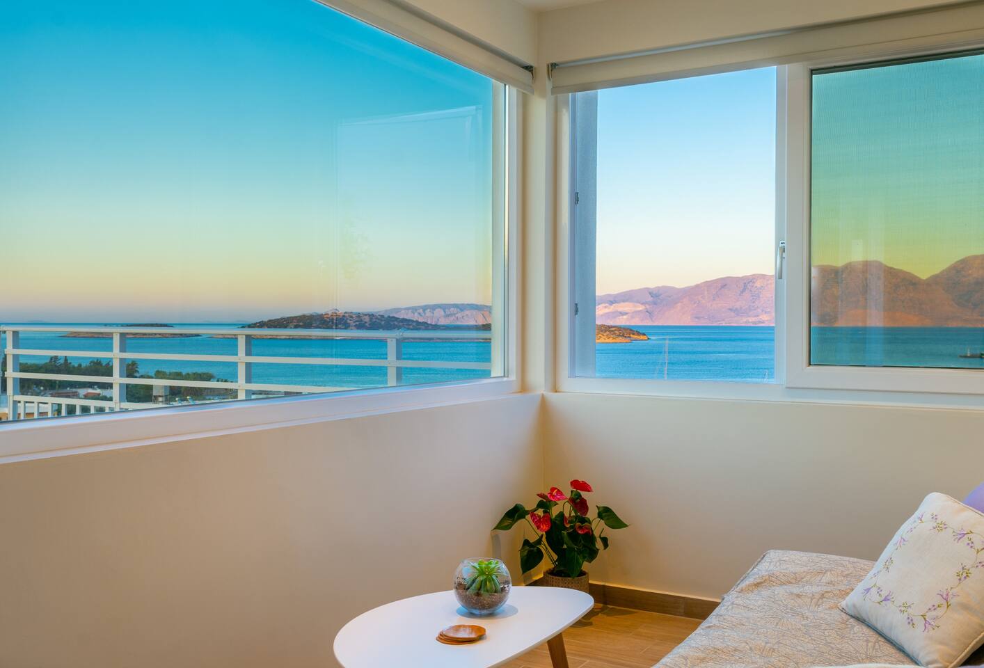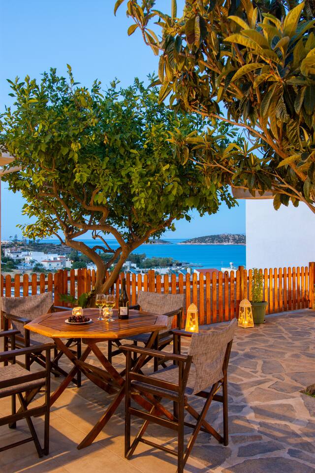 Magnifique logement très bien situé où on peut profiter d'Agios à pieds car le centre ville se trouve à 15 minutes en longeant la mer. C'est très agréable !