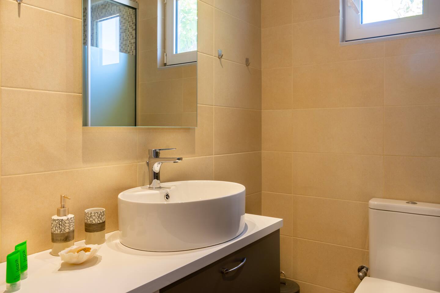 Die Unterkunft ist noch schöner als auf den Bildern. Wir haben uns super wohl gefühlt und hatten alles, was man für einen Aufenthalt benötigt. Die Küche ist gut ausgestattet und es hat einen grossen Kühlschrank. Sehr aufmerksam waren das bereits gekühlte Wasser im Kühlschrank, die Früchte auf dem Tisch, die Flasche Wein sowie die Keckse. Die beiden Sitzmöglichkeiten sind perfekt für den abendlichen Apéro sowie das Frühstück am Morgen. Ins Zentrum gelangt man nach etwa einem 15 Minütigen Fussweg - Dies beschwert einem aber dann auch die ruhigen Nächte, weil man etwas ausserhalb ist. Es gibt einen Einkaufsladen direkt bei der Unterkunft sowie diverse Kaffees für den morgendlichen Kaffee (es gibt auch einen Kaffeemaschine in der Unterkunft) oder einer Leckerei zum Frühstück. Parken kann man direkt bei der Unterkunft und man ist von der Unterkunft auch schnell auf den Hauptstrassen für Ausflüge in der Gegend. Ich kann die Unterkunft wärmstens empfehlen.