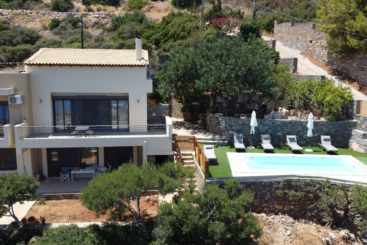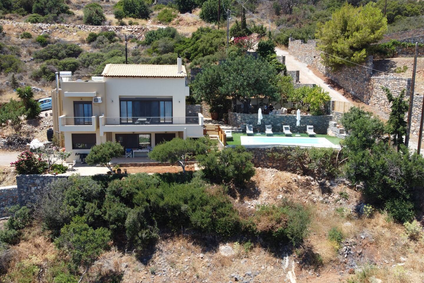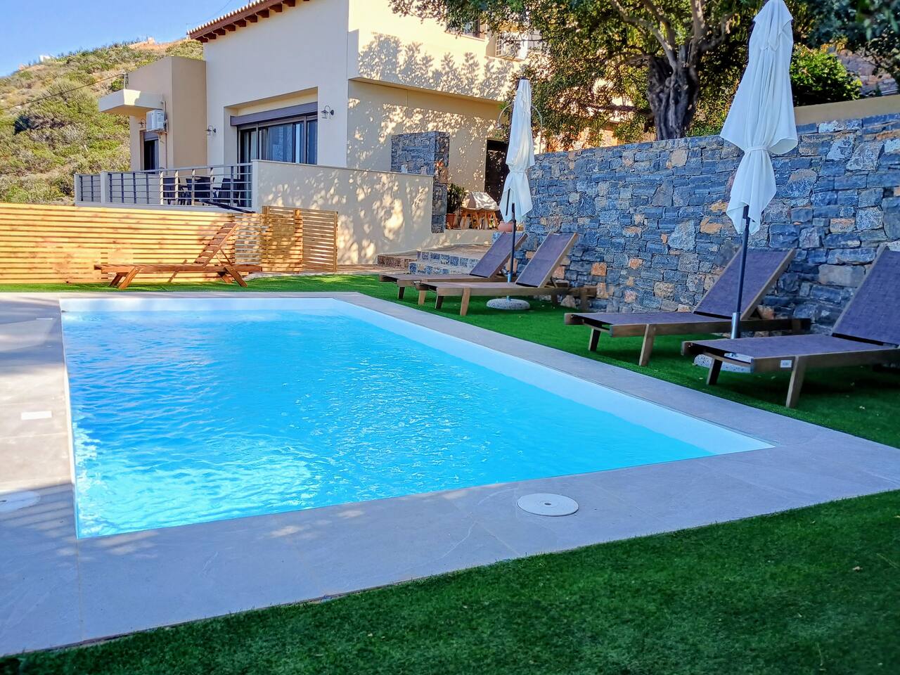 🏡 The Space 4 spacious bedrooms: 2 located on the ground floor and 2 on the first floor, offering privacy and flexibility. 2 modern bathrooms with fresh, clean finishes. A fully equipped kitchen ready for everything from casual breakfasts to full family dinners. Open and bright living spaces designed for relaxation and gathering. Towels and bed linens are provided for your convenience. ☀️ Outdoor Living Step outside and enjoy your own private pool, surrounded by sun loungers and outdoor seating — ideal for cooling off under the Cretan sun or enjoying an evening swim under the stars. 📍 Location Situated in the charming area of Elounda, you're just a short drive from beaches, tavernas, and shops, while still enjoying peace and quiet away from the crowds. Whether you're sipping coffee by the pool, cooking with local ingredients, or exploring the magic of Crete, Elounda Irini’s Villa is your home away from home.
