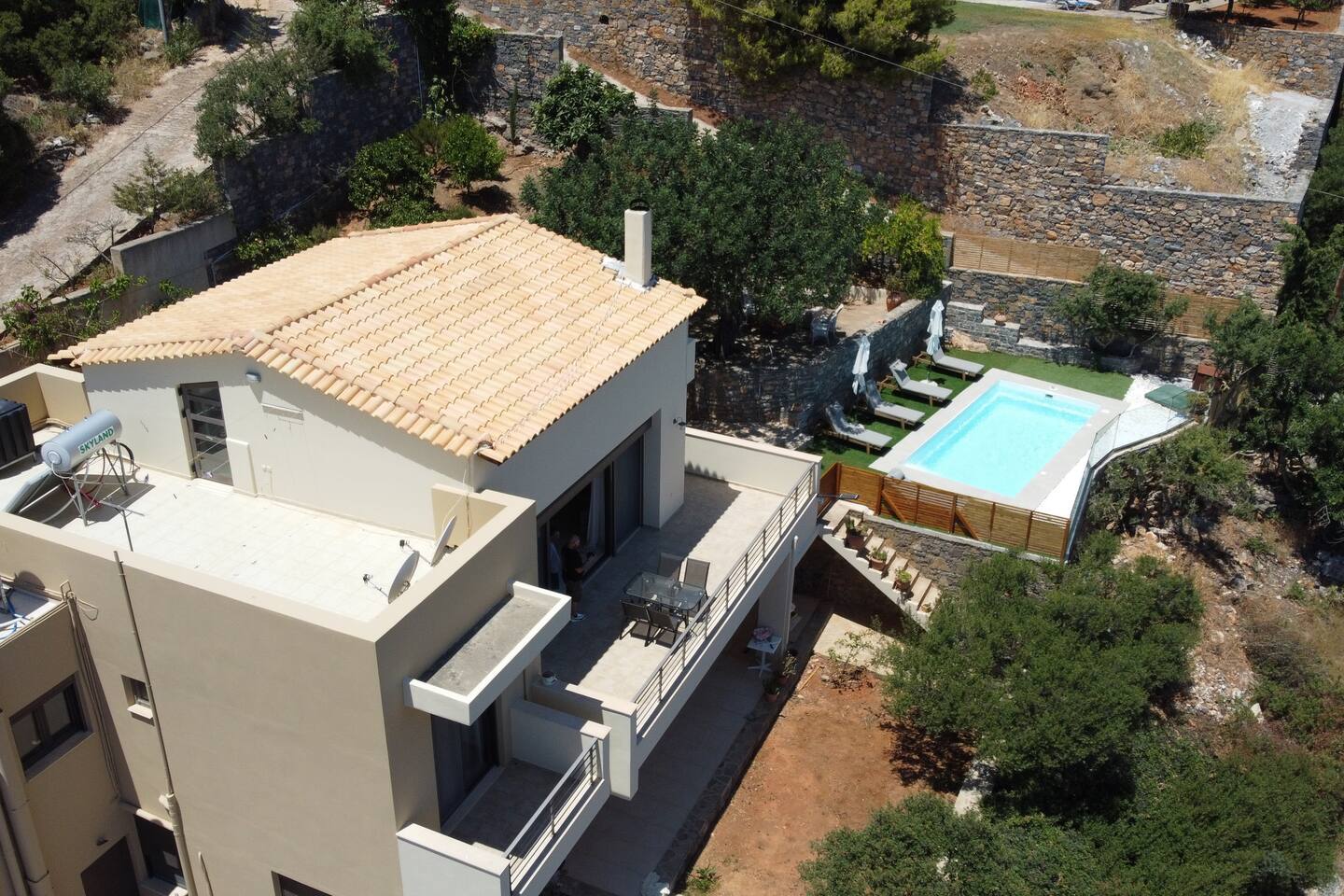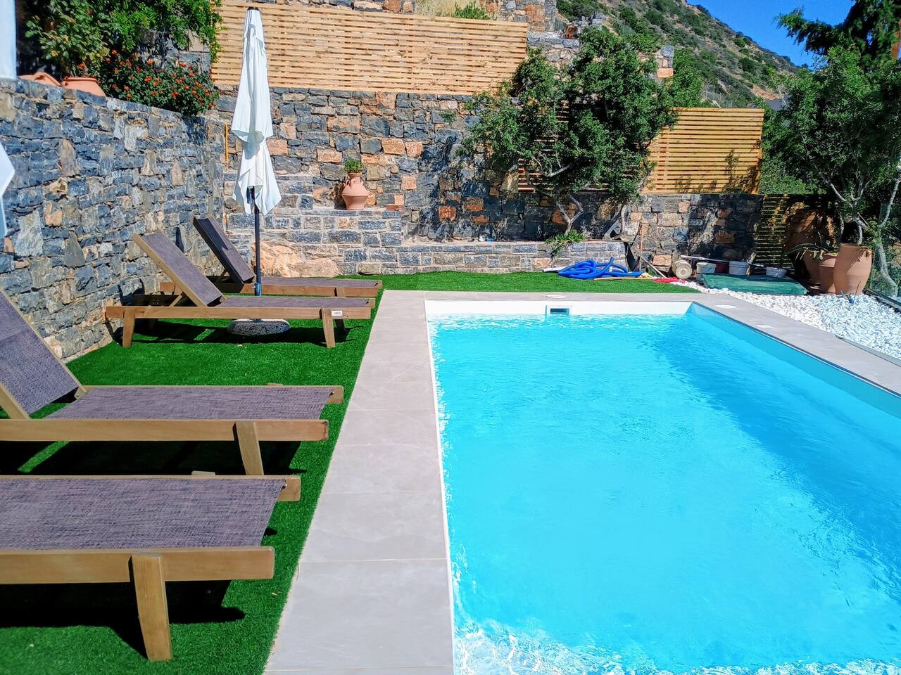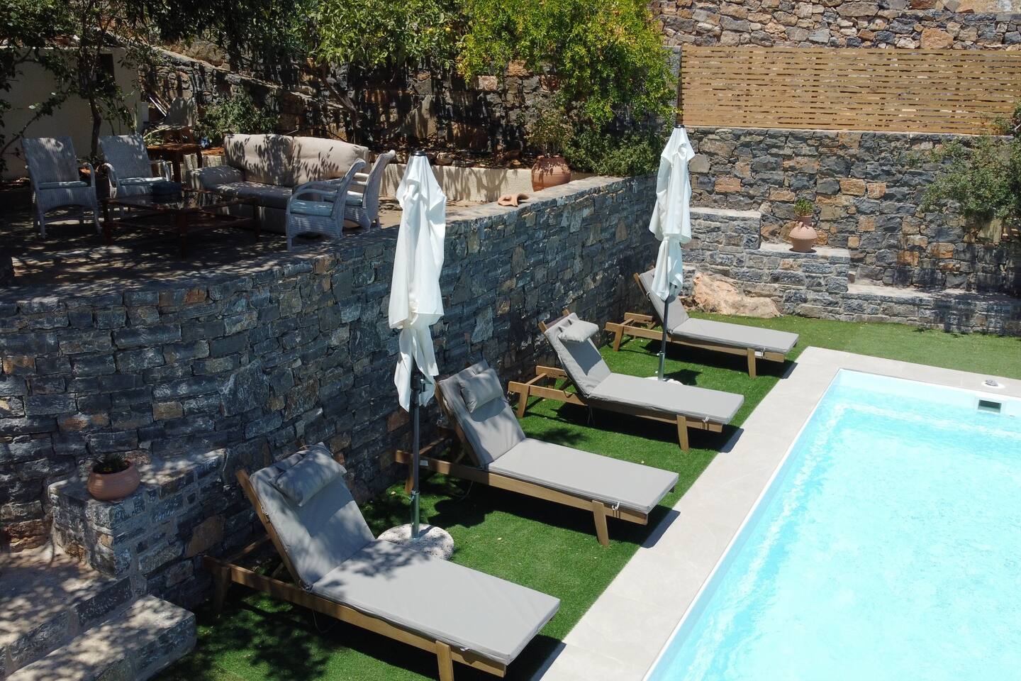 🏡 The Space 4 spacious bedrooms: 2 located on the ground floor and 2 on the first floor, offering privacy and flexibility. 2 modern bathrooms with fresh, clean finishes. A fully equipped kitchen ready for everything from casual breakfasts to full family dinners. Open and bright living spaces designed for relaxation and gathering. Towels and bed linens are provided for your convenience. ☀️ Outdoor Living Step outside and enjoy your own private pool, surrounded by sun loungers and outdoor seating — ideal for cooling off under the Cretan sun or enjoying an evening swim under the stars. 📍 Location Situated in the charming area of Elounda, you're just a short drive from beaches, tavernas, and shops, while still enjoying peace and quiet away from the crowds. Whether you're sipping coffee by the pool, cooking with local ingredients, or exploring the magic of Crete, Elounda Irini’s Villa is your home away from home.