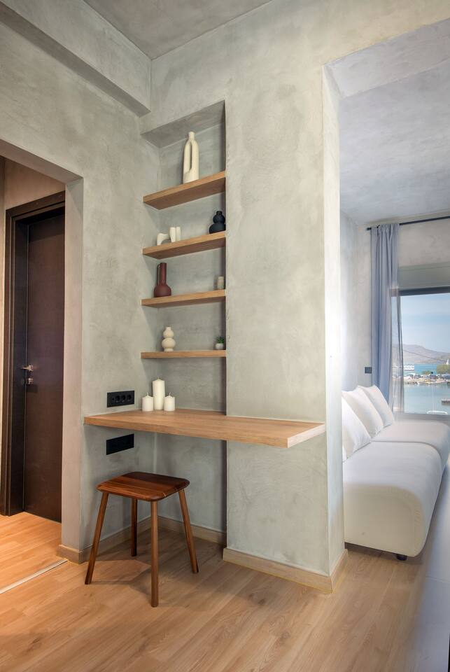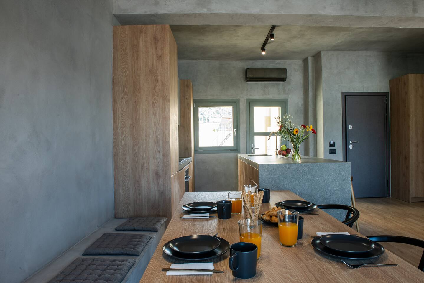 ✨ The space Step into a beautifully designed open-plan living space where smooth concrete meets natural wood accents. The fully equipped kitchen features a spacious island with bar seating, ambient lighting and thoughtful details - perfect for preparing meals or relaxing with a glass of wine. 🛏 Bedrooms The master bedroom has a double bed and air conditioning, creating a peaceful space to relax after a day of exploring. The second bedroom has two comfortable single beds - perfect for children or friends. 🌅 Location Located right on Elounda's main square, within walking distance of cafes, restaurants, boutiques and the beach. Whether you're setting off on a boat trip to Spinalonga or enjoying the local tavernas, everything is on your doorstep. Please note: the apartment is located on the first floor and is only accessible by stairs.
