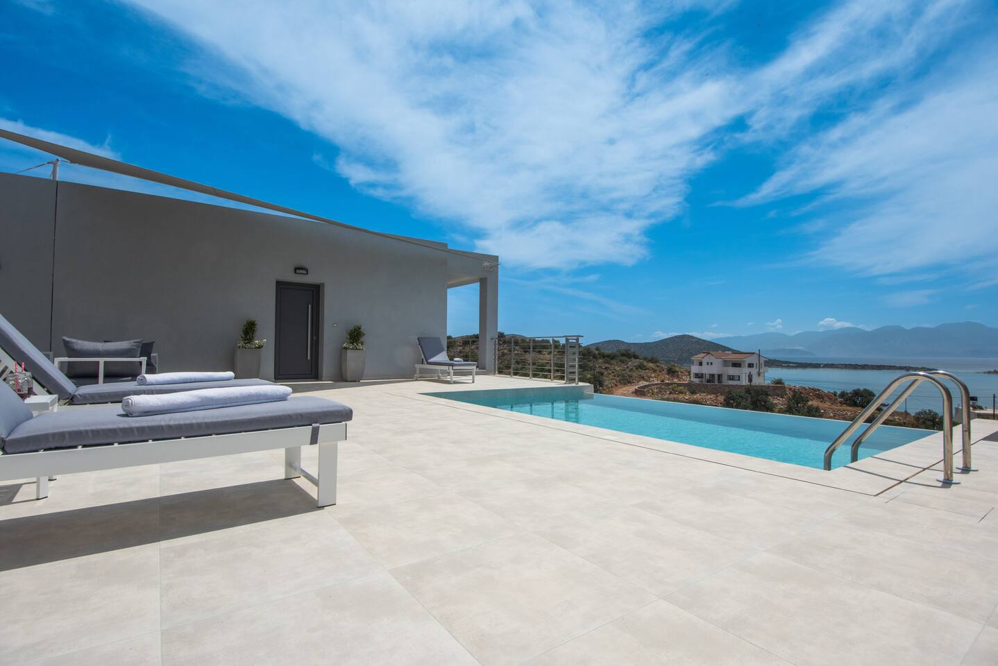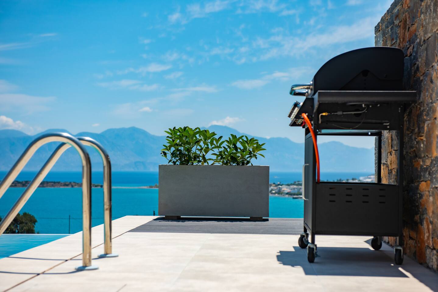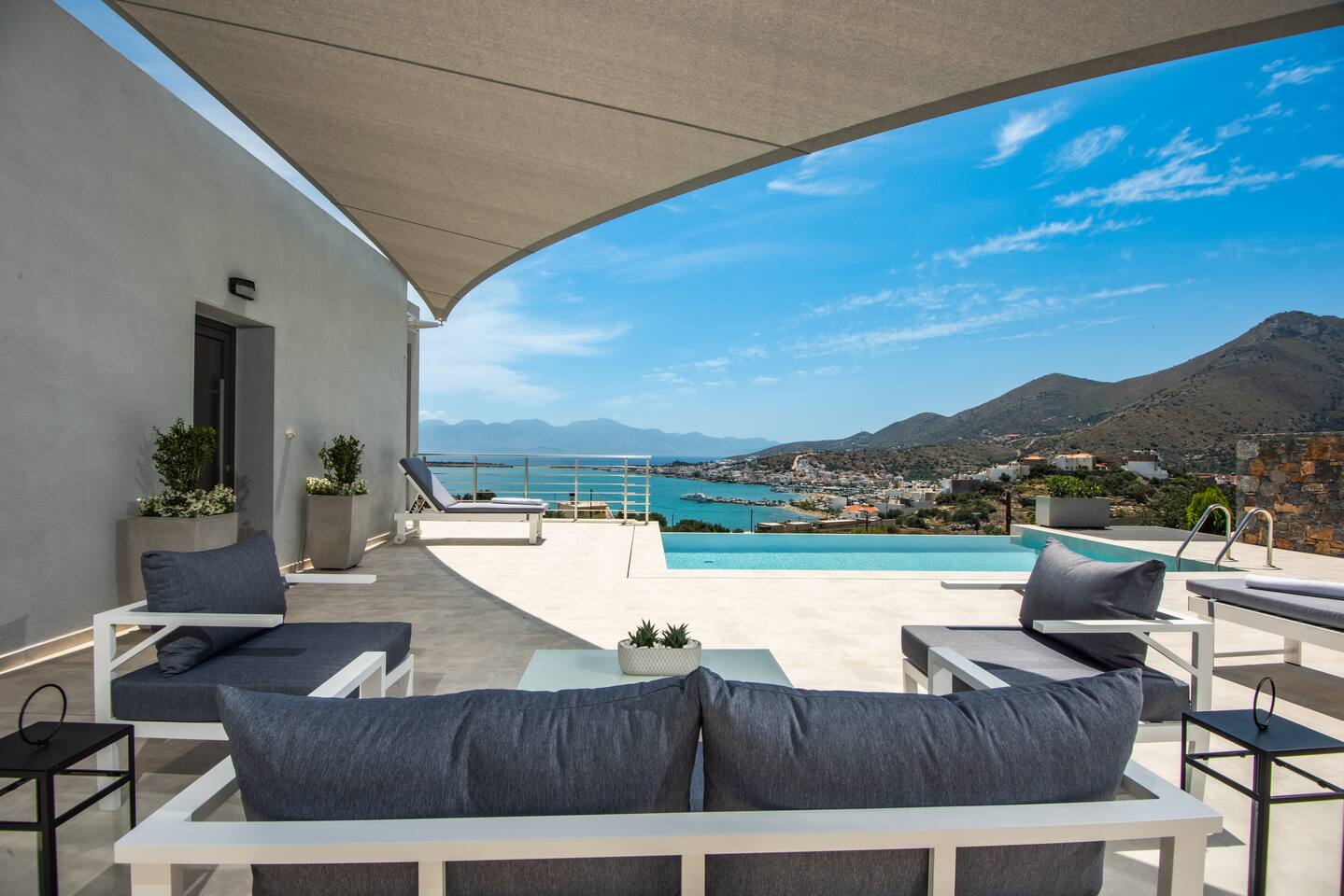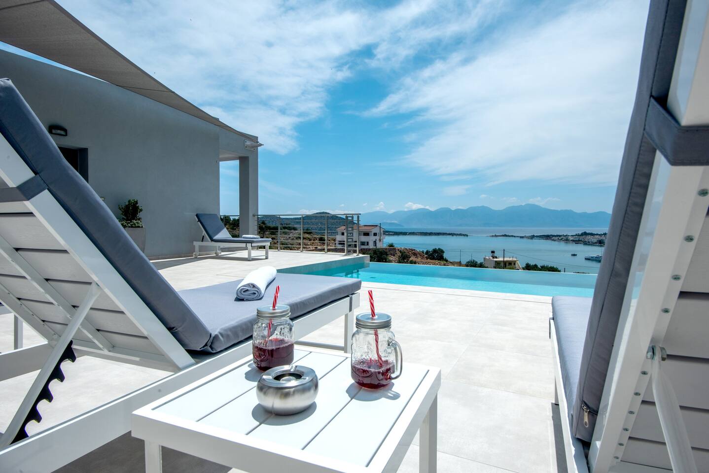 As you step inside this elegant apartment, you'll immediately be captivated by the tasteful decor and the serene ambiance it exudes. The spacious living area features a cozy double bed and a convenient sofa bed, providing ample space for relaxation and rejuvenation. With one well-appointed bathroom, complete with a hairdryer, shampoo, body soap, and hot water, your comfort is guaranteed. Elounda Sunshine Place boasts a range of amenities designed to make your stay a memorable one. You'll find a free washer conveniently located within the unit, allowing you to pack light and keep your clothes fresh throughout your vacation. The apartment also provides essentials such as towels, bed sheets, soap, and toilet paper, ensuring a hassle-free stay. For your entertainment, two TVs are at your disposal, so you can unwind and catch up on your favorite shows. The apartment is equipped with air conditioning to keep you cool during the warm summer months, and a smoke detector is in place for your safety and peace of mind. The fully equipped kitchen is a true highlight of Elounda Sunshine Place. It provides everything you need to prepare your own delicious meals, including a refrigerator, microwave, cooking basics, pots and pans, oil, salt, and pepper. You'll find a wide selection of dishes, silverware, bowls, chopsticks, plates, cups, and even wine glasses, ensuring that every dining experience is exceptional. Additionally, a hot water kettle, coffee maker, and toaster are available for your convenience. As you step outside onto the private balcony, you'll be greeted by stunning views of the bay, sea, pool, and mountains. This outdoor space is furnished with comfortable furniture, allowing you to soak up the Mediterranean sunshine while enjoying a cup of coffee or savoring a glass of wine. It's the perfect spot to unwind and take in the breathtaking surroundings.