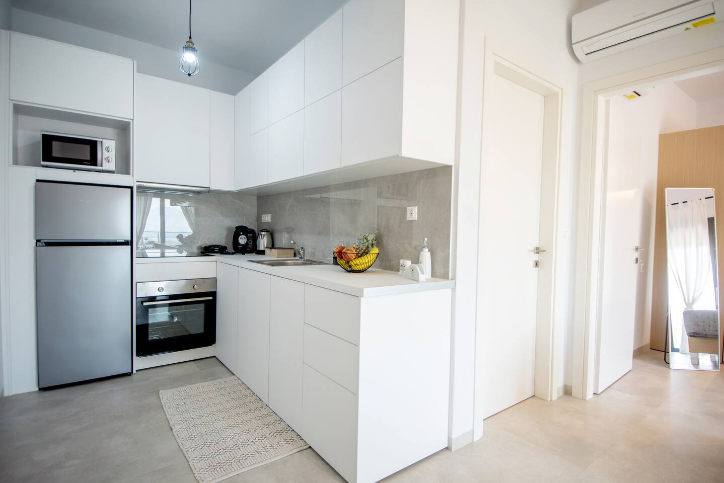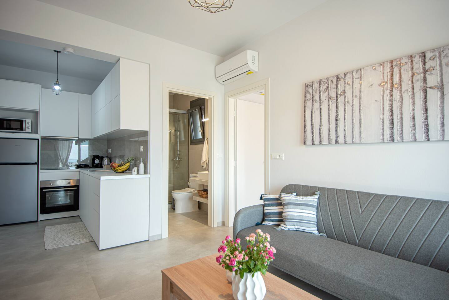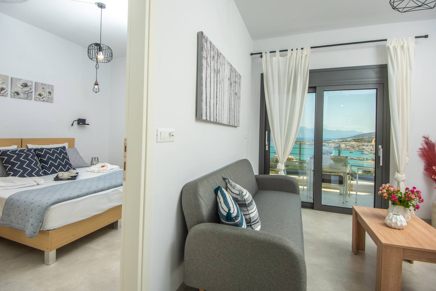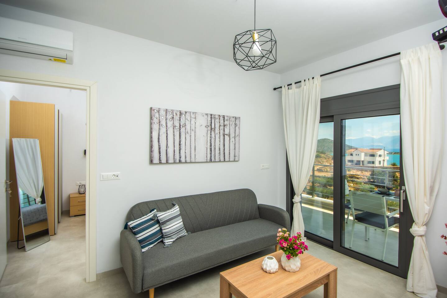 As you step inside this elegant apartment, you'll immediately be captivated by the tasteful decor and the serene ambiance it exudes. The spacious living area features a cozy double bed and a convenient sofa bed, providing ample space for relaxation and rejuvenation. With one well-appointed bathroom, complete with a hairdryer, shampoo, body soap, and hot water, your comfort is guaranteed. Elounda Sunshine Place boasts a range of amenities designed to make your stay a memorable one. You'll find a free washer conveniently located within the unit, allowing you to pack light and keep your clothes fresh throughout your vacation. The apartment also provides essentials such as towels, bed sheets, soap, and toilet paper, ensuring a hassle-free stay. For your entertainment, two TVs are at your disposal, so you can unwind and catch up on your favorite shows. The apartment is equipped with air conditioning to keep you cool during the warm summer months, and a smoke detector is in place for your safety and peace of mind. The fully equipped kitchen is a true highlight of Elounda Sunshine Place. It provides everything you need to prepare your own delicious meals, including a refrigerator, microwave, cooking basics, pots and pans, oil, salt, and pepper. You'll find a wide selection of dishes, silverware, bowls, chopsticks, plates, cups, and even wine glasses, ensuring that every dining experience is exceptional. Additionally, a hot water kettle, coffee maker, and toaster are available for your convenience. As you step outside onto the private balcony, you'll be greeted by stunning views of the bay, sea, pool, and mountains. This outdoor space is furnished with comfortable furniture, allowing you to soak up the Mediterranean sunshine while enjoying a cup of coffee or savoring a glass of wine. It's the perfect spot to unwind and take in the breathtaking surroundings.