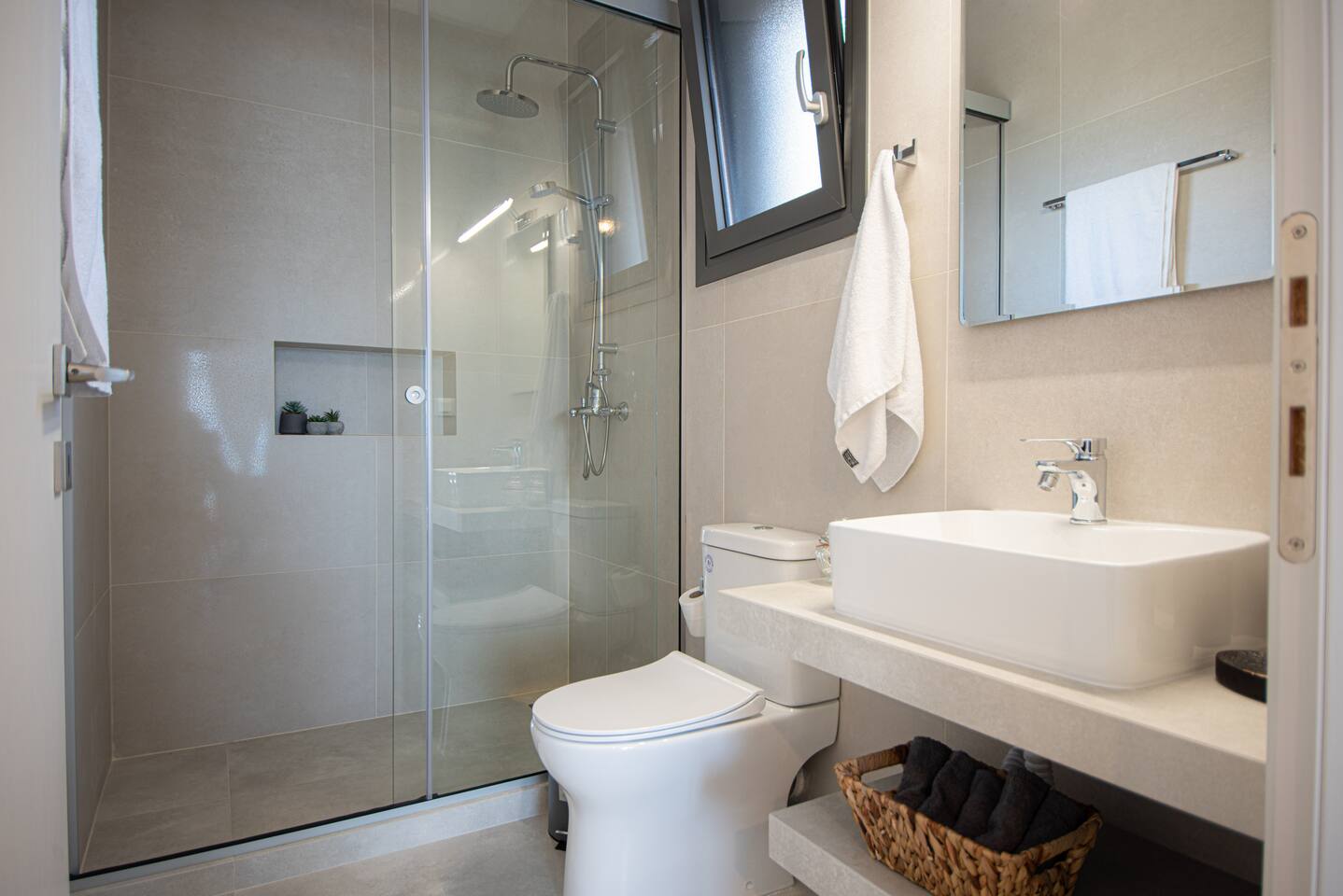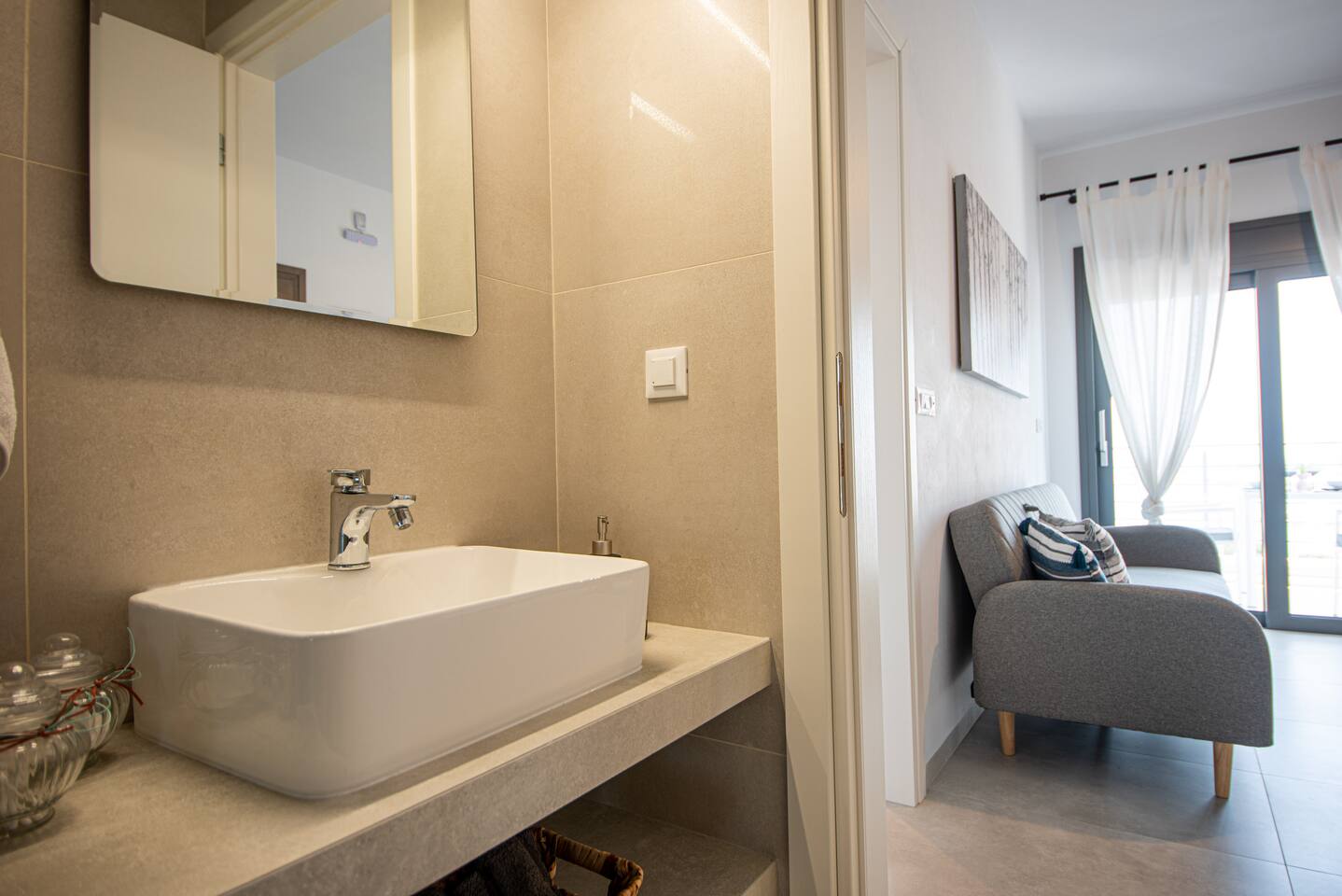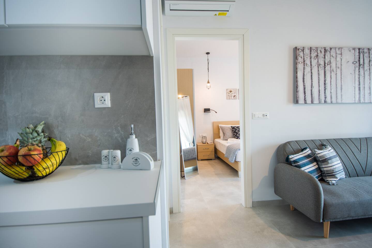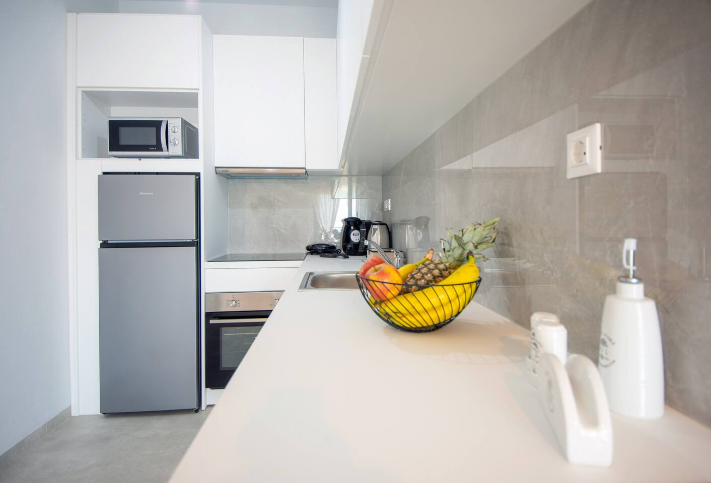 As you step inside this elegant apartment, you'll immediately be captivated by the tasteful decor and the serene ambiance it exudes. The spacious living area features a cozy double bed and a convenient sofa bed, providing ample space for relaxation and rejuvenation. With one well-appointed bathroom, complete with a hairdryer, shampoo, body soap, and hot water, your comfort is guaranteed. Elounda Sunshine Place boasts a range of amenities designed to make your stay a memorable one. You'll find a free washer conveniently located within the unit, allowing you to pack light and keep your clothes fresh throughout your vacation. The apartment also provides essentials such as towels, bed sheets, soap, and toilet paper, ensuring a hassle-free stay. For your entertainment, two TVs are at your disposal, so you can unwind and catch up on your favorite shows. The apartment is equipped with air conditioning to keep you cool during the warm summer months, and a smoke detector is in place for your safety and peace of mind. The fully equipped kitchen is a true highlight of Elounda Sunshine Place. It provides everything you need to prepare your own delicious meals, including a refrigerator, microwave, cooking basics, pots and pans, oil, salt, and pepper. You'll find a wide selection of dishes, silverware, bowls, chopsticks, plates, cups, and even wine glasses, ensuring that every dining experience is exceptional. Additionally, a hot water kettle, coffee maker, and toaster are available for your convenience. As you step outside onto the private balcony, you'll be greeted by stunning views of the bay, sea, pool, and mountains. This outdoor space is furnished with comfortable furniture, allowing you to soak up the Mediterranean sunshine while enjoying a cup of coffee or savoring a glass of wine. It's the perfect spot to unwind and take in the breathtaking surroundings.