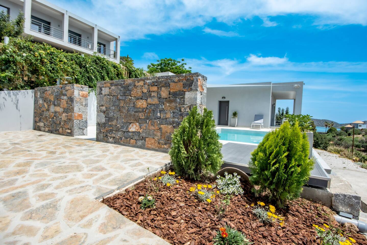 Elounda Sunshine Place offers free private parking on the premises, ensuring that your transportation needs are met. The highlight of this exquisite property is the private pool, available to you all year round, 24 hours a day. Take a refreshing dip or simply lounge by the poolside, basking in the glorious Greek sun. Cleaning services are provided every second day, allowing you to relax and enjoy your vacation without worrying about daily chores. With just a two-minute drive, you can reach Elounda's main beach and square, immersing yourself in the vibrant atmosphere of this charming town. Indulge in the local cuisine at the nearby restaurants, conveniently located just a short drive away.