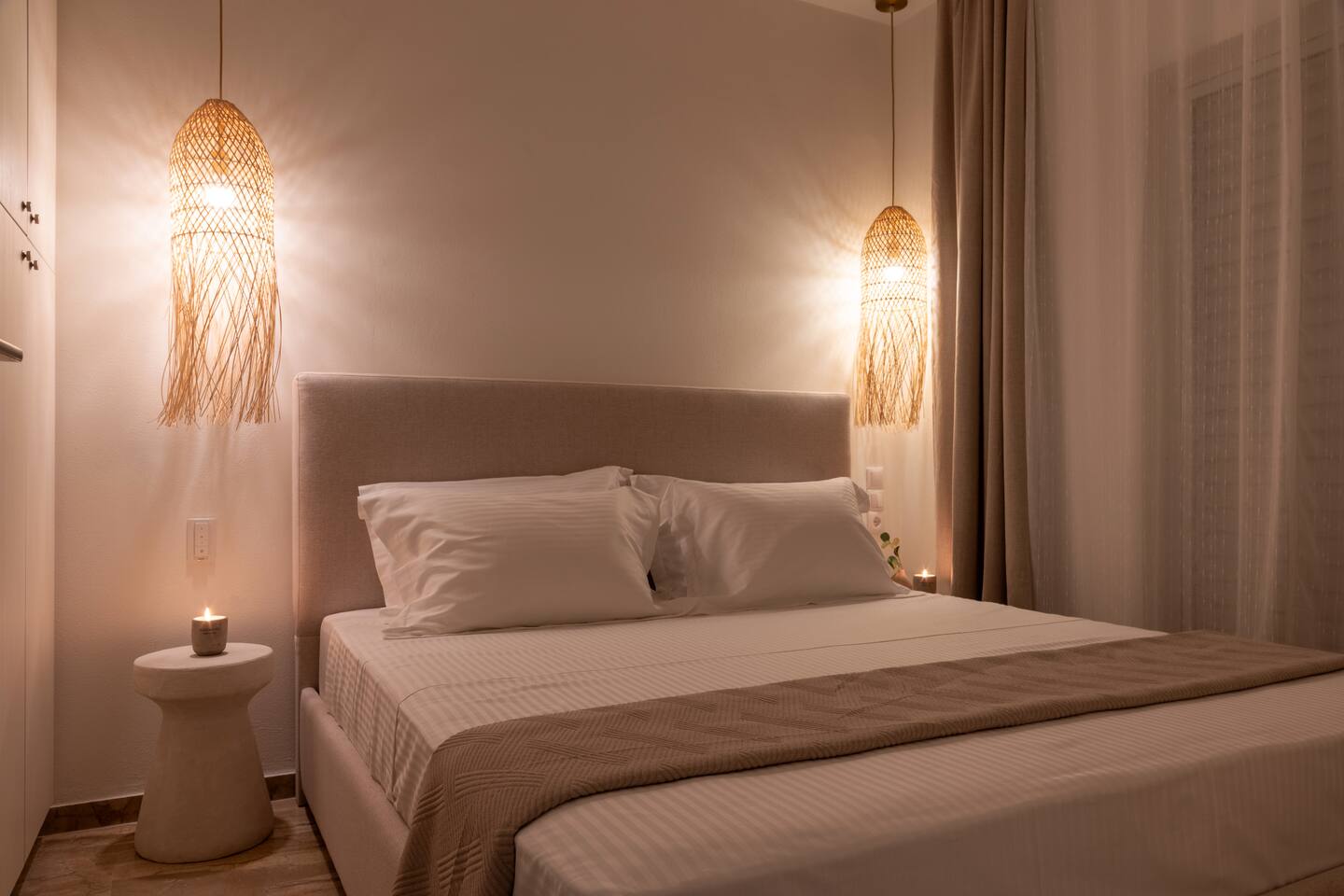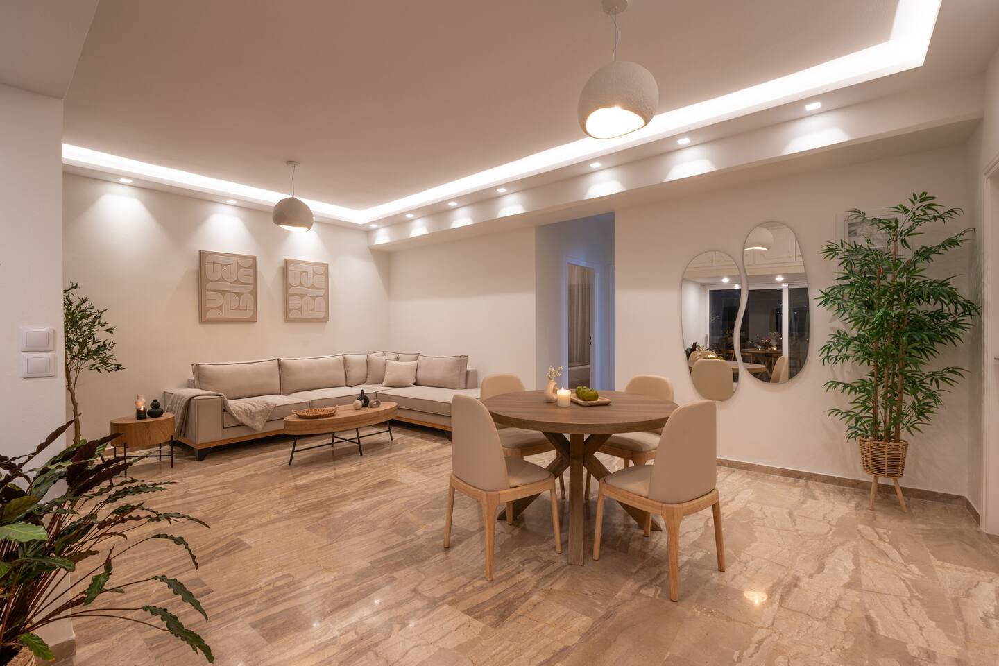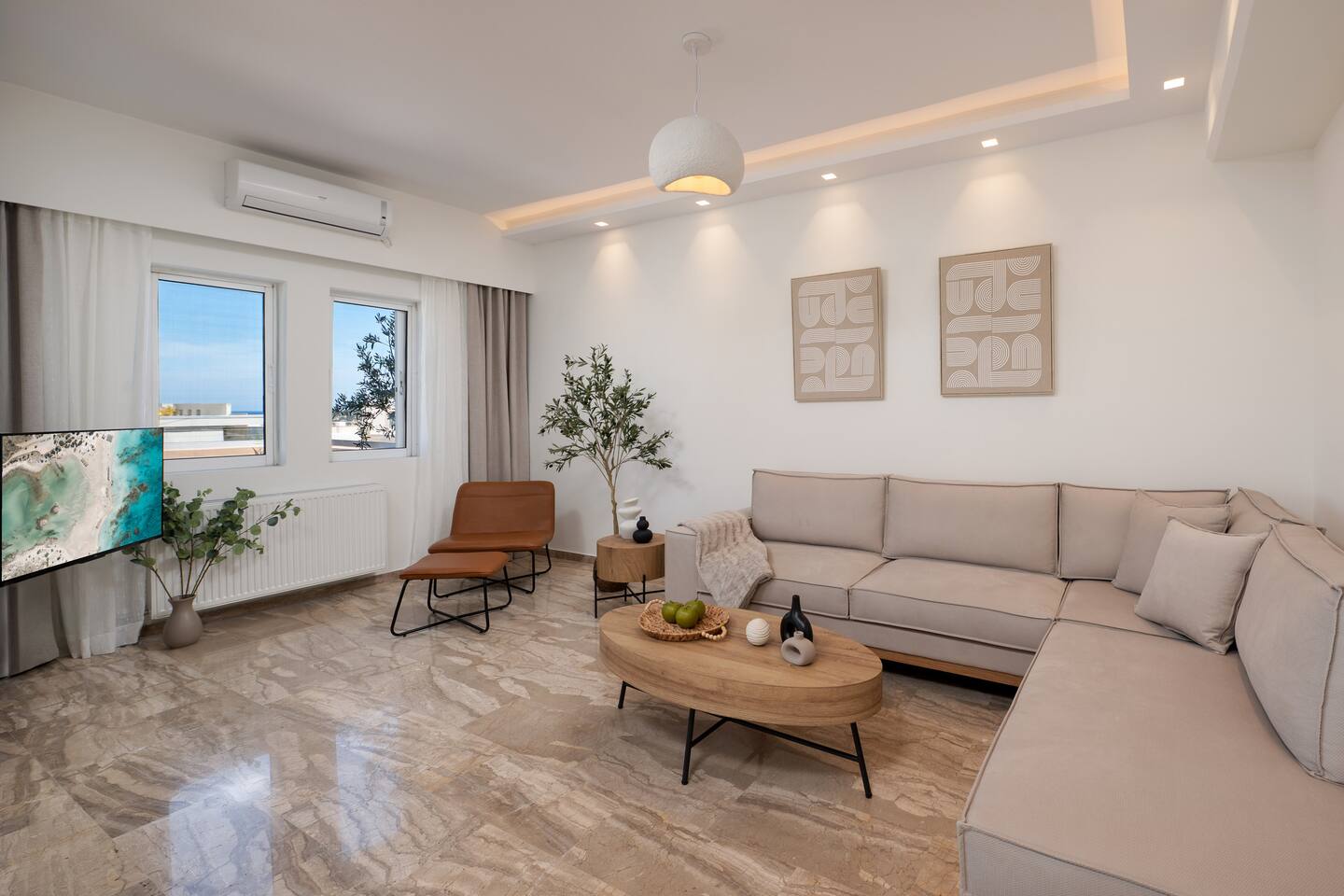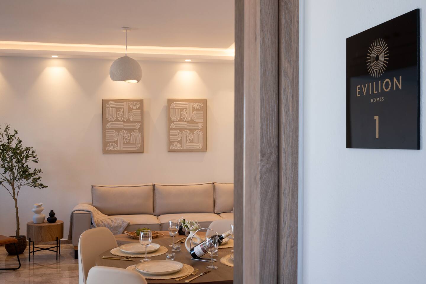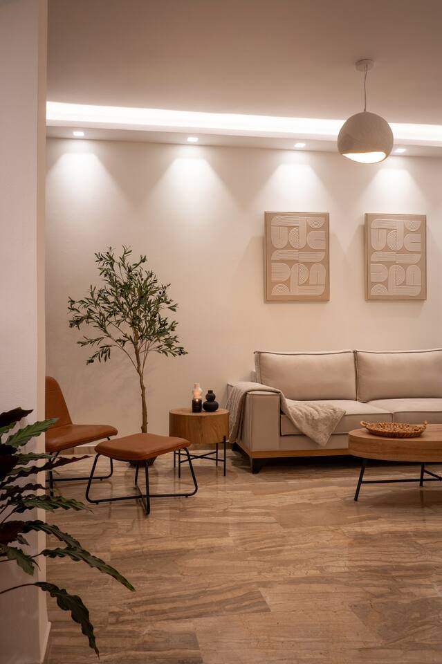 🌿 Evilion Home 1 – Your Place to Relax, Work & Enjoy! If you're seeking comfort, tranquility, and a touch of luxury, Evilion Home 1 is the perfect choice. Located on the 2nd floor of a private residential building, this modern apartment offers an ideal retreat for up to 3 adults or families with children over 12 years old. The space features warm, earthy tones and natural materials like wood and marble, creating a cozy and welcoming atmosphere.