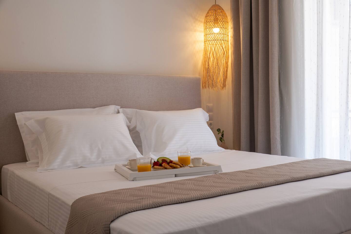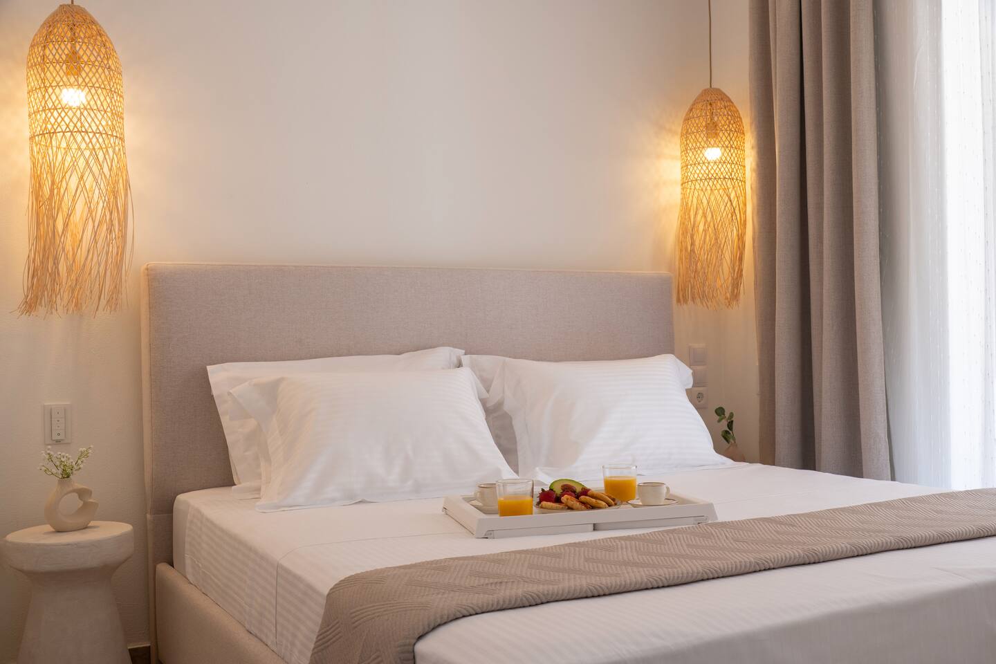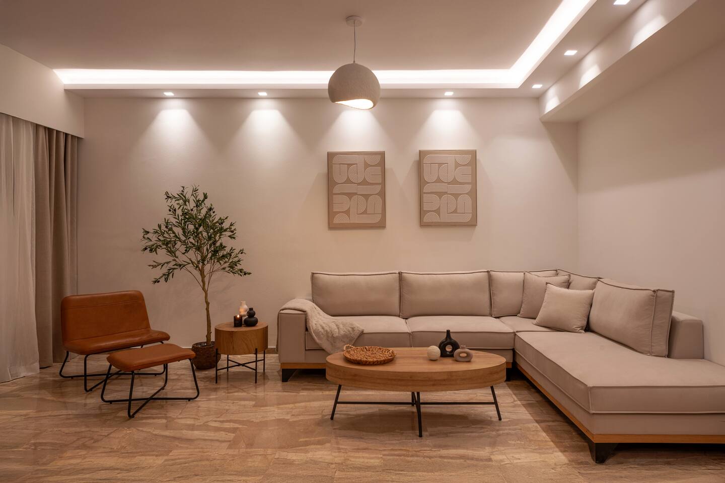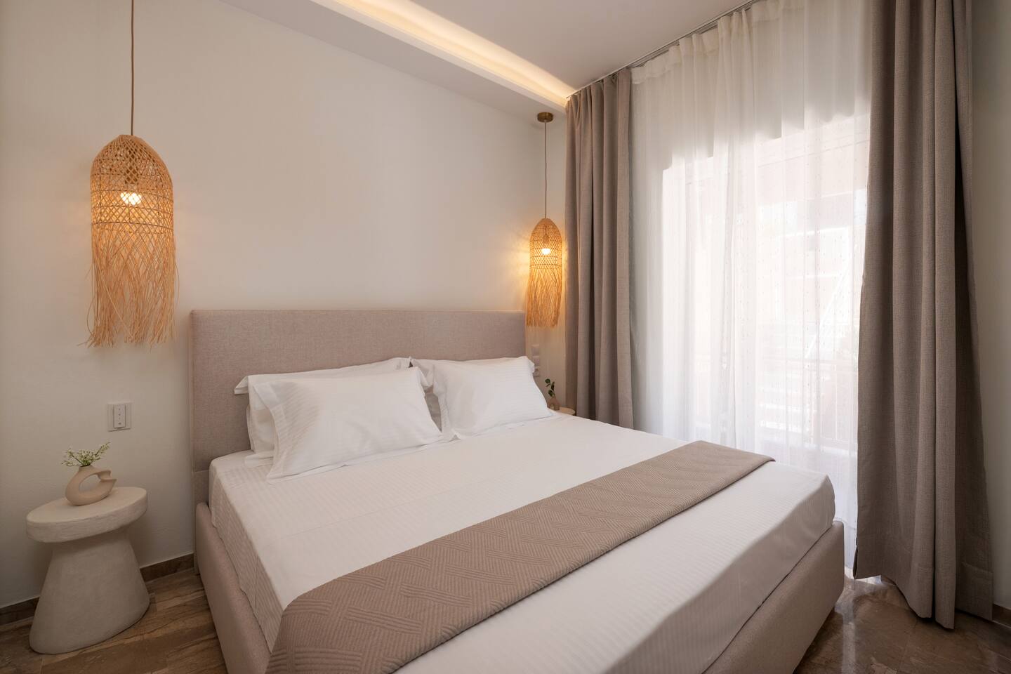 🌿 Evilion Home 1 – Your Place to Relax, Work & Enjoy! If you're seeking comfort, tranquility, and a touch of luxury, Evilion Home 1 is the perfect choice. Located on the 2nd floor of a private residential building, this modern apartment offers an ideal retreat for up to 3 adults or families with children over 12 years old. The space features warm, earthy tones and natural materials like wood and marble, creating a cozy and welcoming atmosphere.