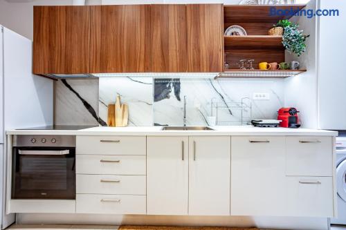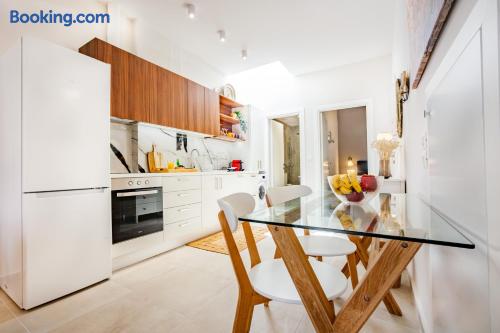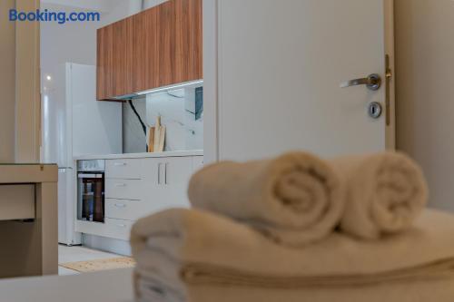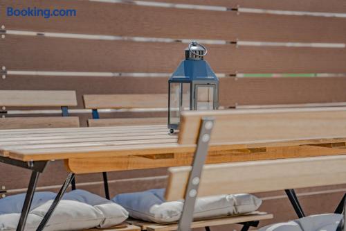 Top Lage im Zentrum! Moderne Einrichtung, sehr sauber! Schöne Dachterrasse! Durch die darunter liegende Bar kann es laut sein, wir spürten manchmal den Bass der Musikanlage durch die Wände vibrieren bis 1h morgens! Auf der Dachterrasse kann es unangenehm vom Dunstabzug der Lokale riechen!