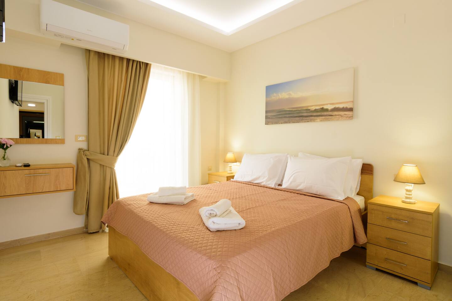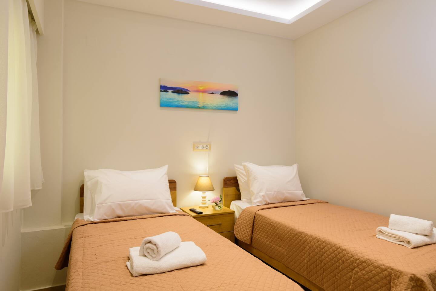 Melia deluxe apartment offers accommodations in Agios Nikolaos, only 150m from Ammos Beach and a 11-minute walk from Agios Nikolaos Port. The air-conditioned accommodation is a 15-minute walk from Ammoudi Beach. Free Wifi is available throughout the property and Ammos Beach is a 2-minute walk away. Providing a balcony and city views, the spacious apartment includes 2 bedrooms, a living room, satellite flat-screen TV, an equipped kitchen, and 1 bathroom with a shower. Towels and bed linen are provided in the apartment. The accommodation is non-smoking. Popular points of interest near the apartment include Almiros Beach, Lake Voulismeni, and Panagia Vrefotrofos. The nearest airport is Heraklion International Airport, 37 miles from Melia deluxe apartment.