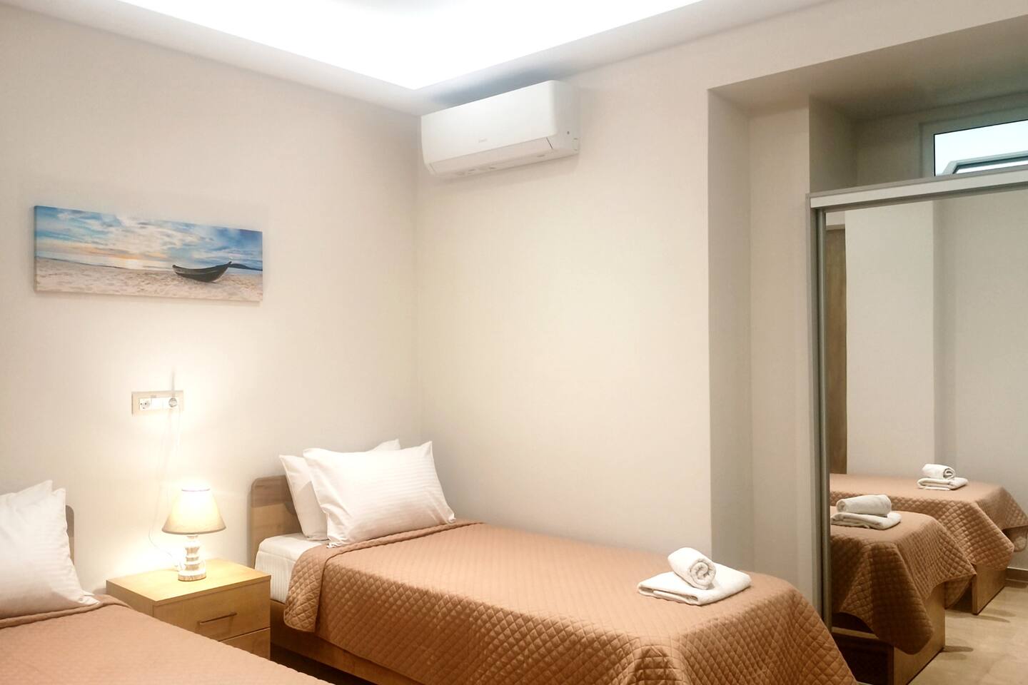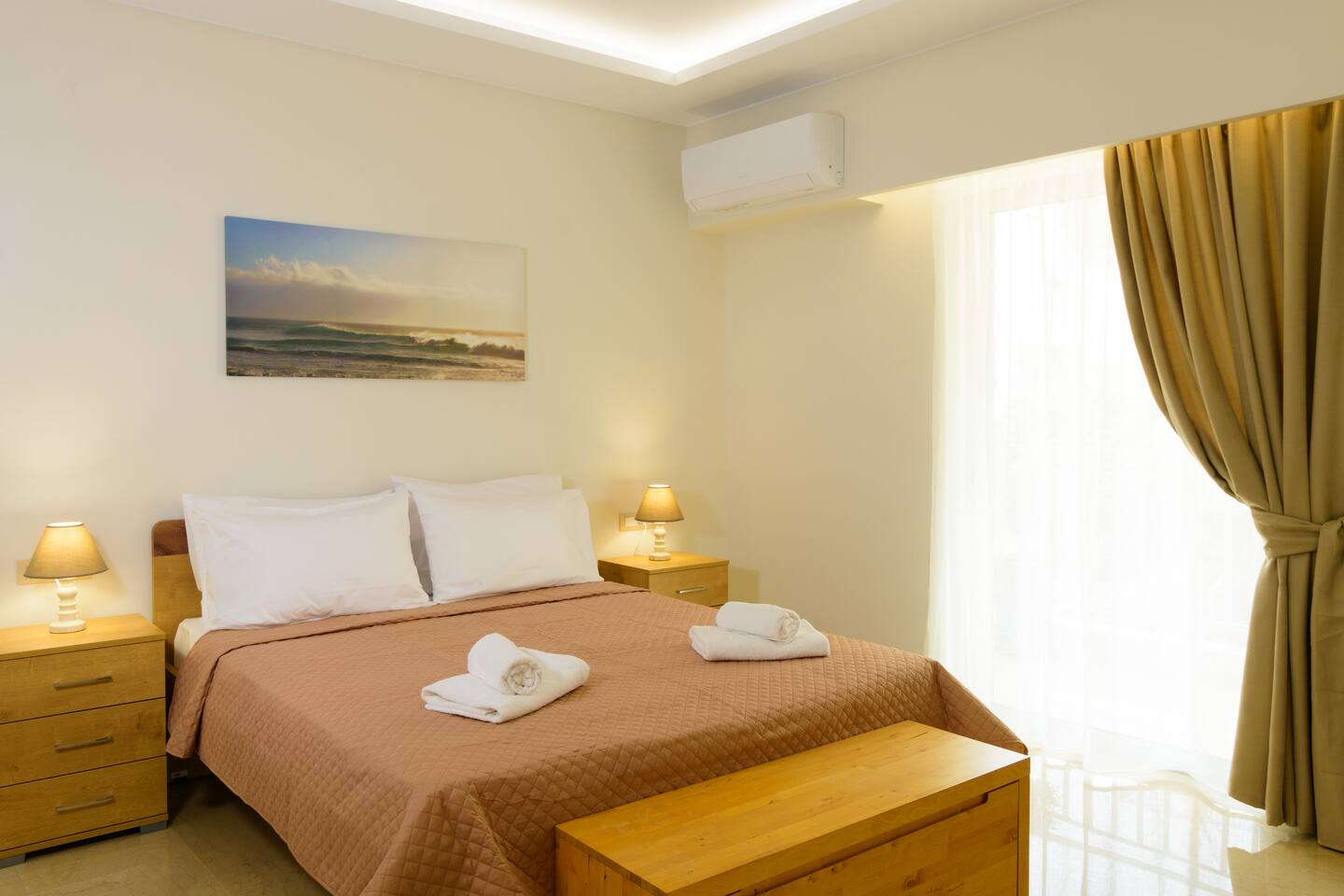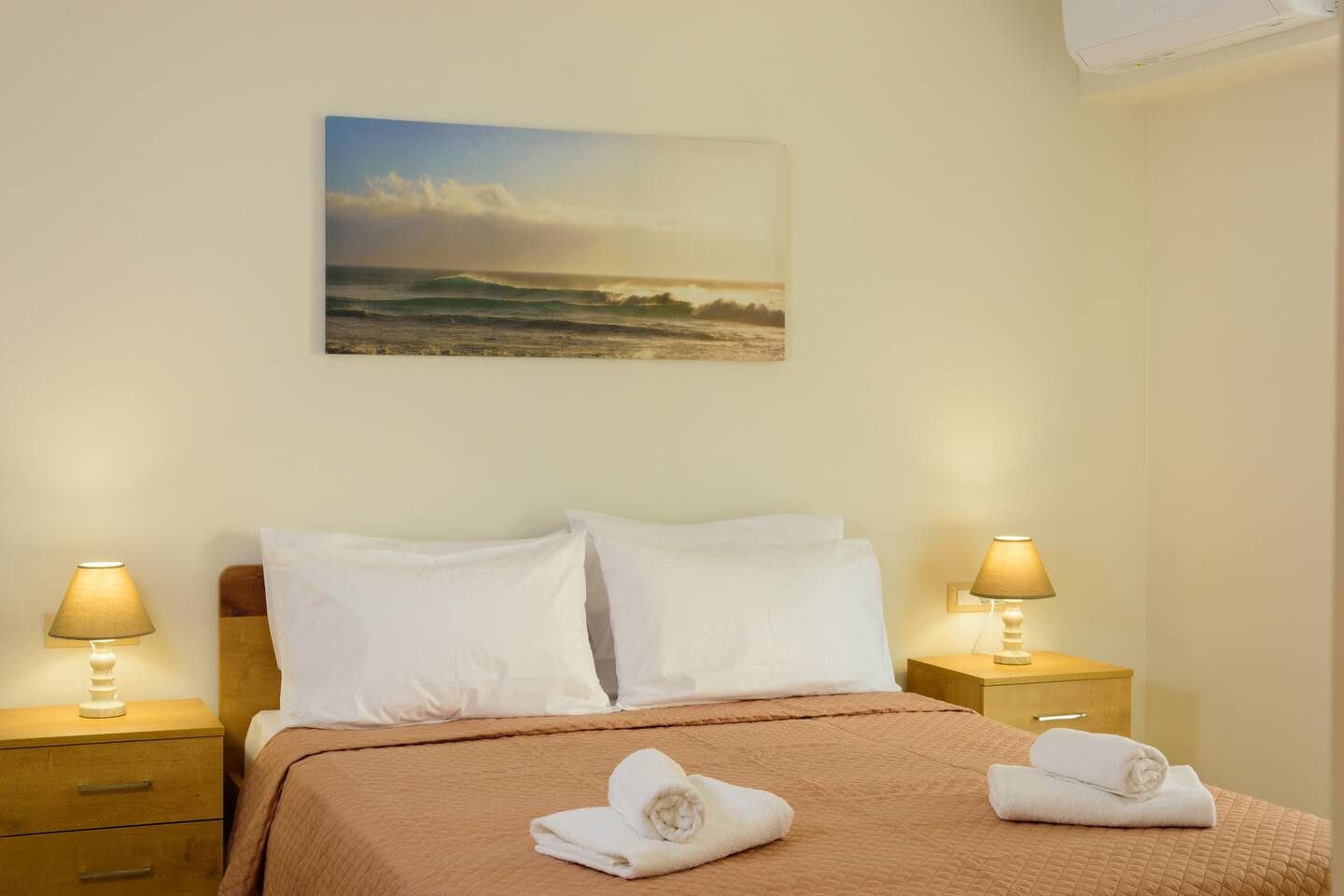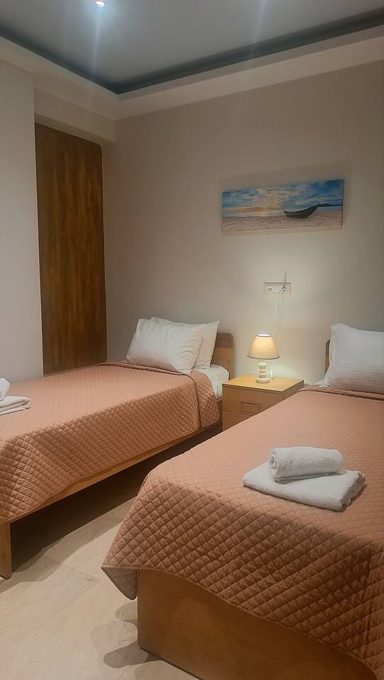 Melia Deluxe City View Apartment is a modern and spacious retreat in the heart of Agios Nikolaos, just a short 7-minute stroll from the iconic Lake Voulismeni and a few meters from the marina. This elegant apartment offers the perfect combination of comfort and convenience, with free WiFi and free public parking next to the building. The apartment features a private balcony with stunning city views, creating the perfect setting for relaxation. Inside, the property boasts two bedrooms, a welcoming living room with a flat-screen TV, and a fully equipped kitchen, ideal for preparing meals during your stay. The modern bathroom includes a shower, and amenities like fresh towels and linens are provided. A private entrance ensures an extra level of privacy. Guests will appreciate the proximity to several popular beaches, including Ammos Beach, Ammoudi Beach, and Almiros Beach, all just a short distance away. Conveniently located 60 km from Heraklion International Airport, the apartment also offers a paid airport shuttle service for a seamless travel experience. Whether you’re here for leisure or exploration, Melia Deluxe City View Apartment is your perfect home away from home.
