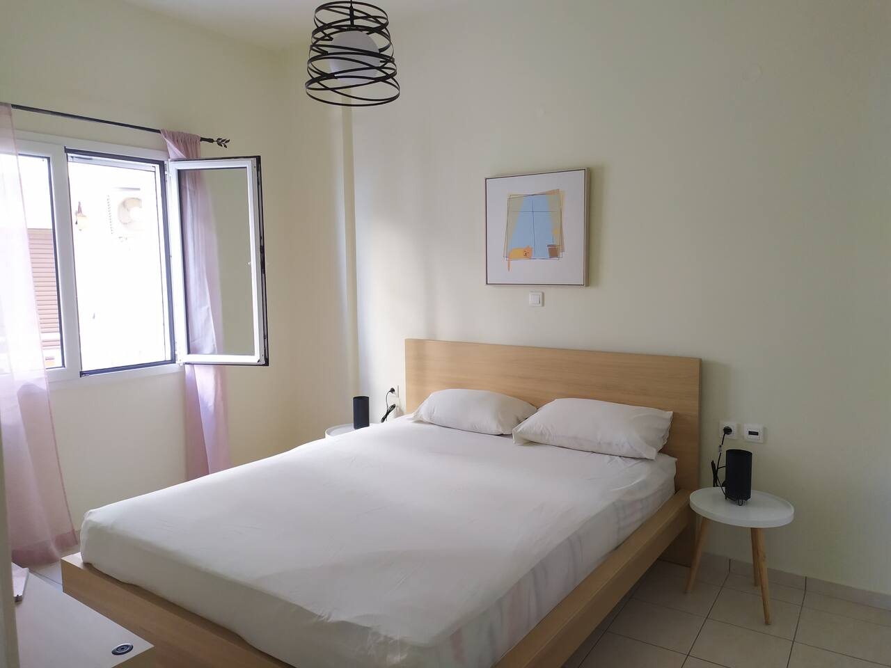 L’appartement est grand et très bien équipé, une chambre séparée et aussi climatisée, lever de soleil tous les matins en prenant le petit déjeuner sur le balcon donnant directement sur la mer ( vue superbe). Accès facile à pied le long de la promenade au centre d’Agios Nikolaos et des plages.